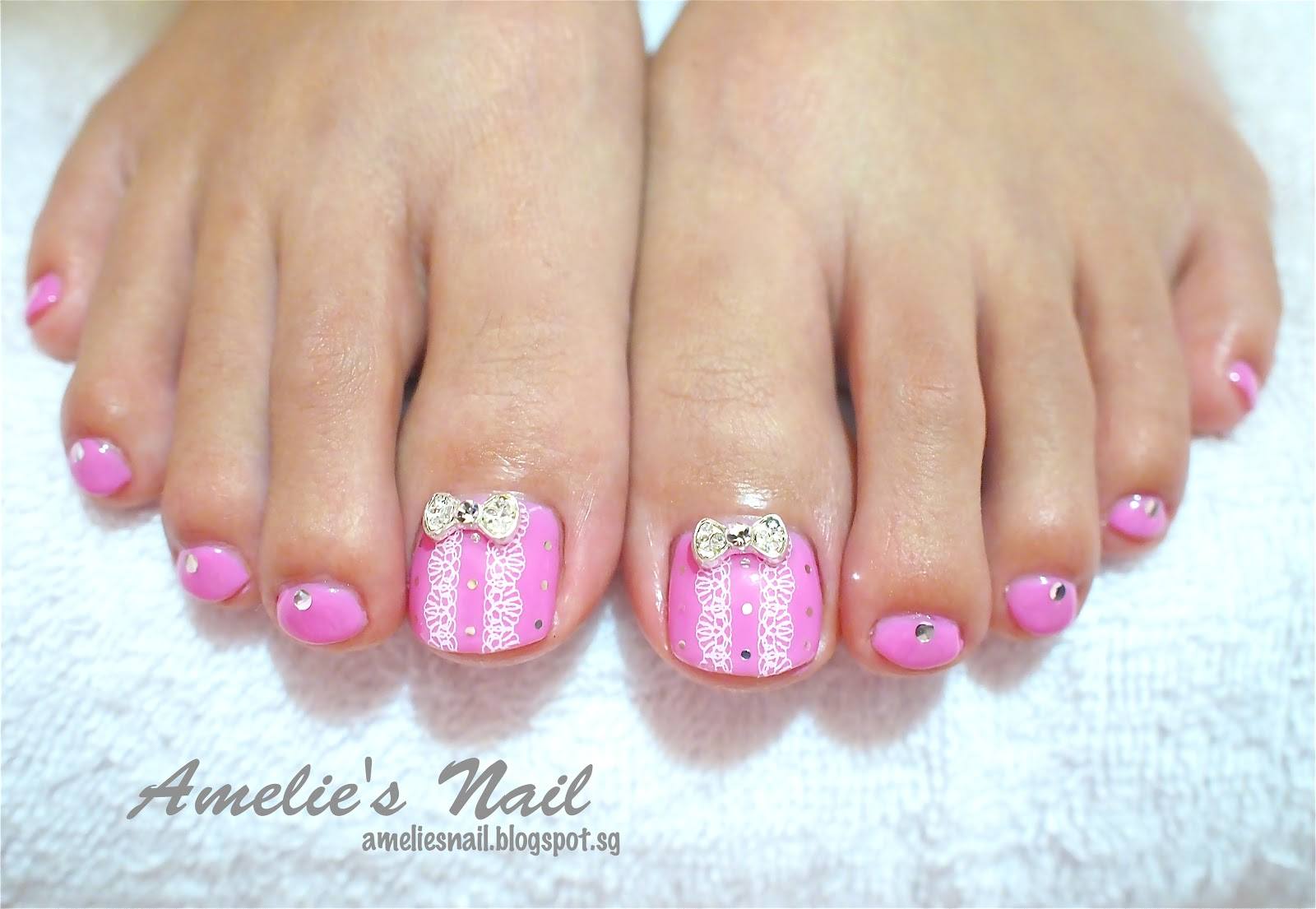 Если используется прозрачный лак, то точечки под детали можно ставить сразу на двух ногтях. При наличии специального клея, готовится по отдельности каждый ноготьГотовый дизайн покрывается лаком или закрепителемТакой педикюр вполне можно выполнить и самостоятельно