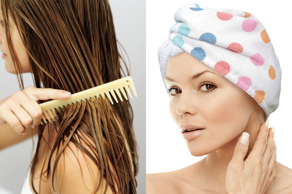 Чтобы придать гладкость и восстановить блеск – при помощи густой расчёски распределить состав по прядям. Также подлечить повреждённые кончики поможет смазывание средством только стержней. Затем закрепить волосы, надеть пакет. Укутать тёплым полотенцем (благодаря этому волосы начнут согреваться, что активизирует действие маски).