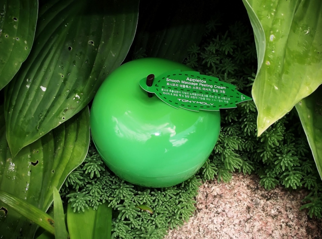 Appletox Smooth Massage Peeling Cream от Tony Moly. Этот пилинг очень любим женщинами самых разных возрастов. А способствуют этому милая упаковка, невероятный аромат зеленого яблока, приятная консистенция и максимально бережное воздействие. Скатка прекрасно растворяет любое загрязнение, снимает раздражение и выравнивает тон лица. А еще она очень экономична в использовании.