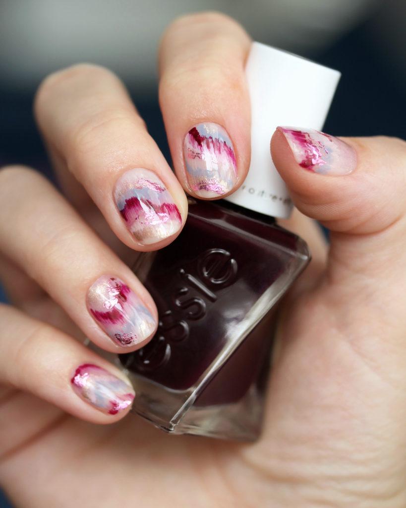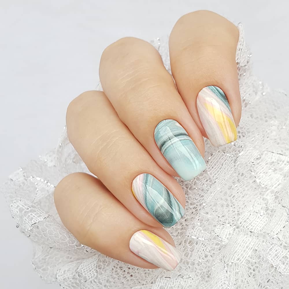 Маникюр с разводами легко создать самостоятельно, он выглядит оригинально и нестандартно. Разводы на ногтях – прекрасный способ разнообразить однотонный нейл-арт как в глянцевом, так и в матовом исполнении. Если вы еще не выполняли на своих ноготках трендовый дизайн с разводами, то самое время «примерить» его и понять насколько красиво и стильно он выглядит.