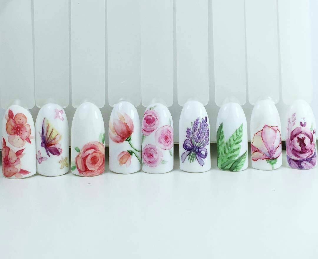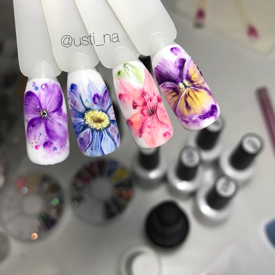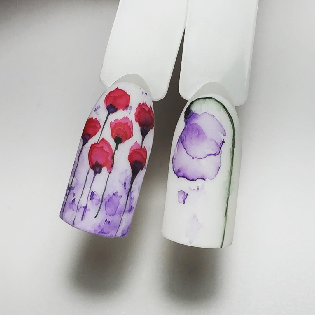 Несколько советов по созданию акварельного рисунка на ногтях: