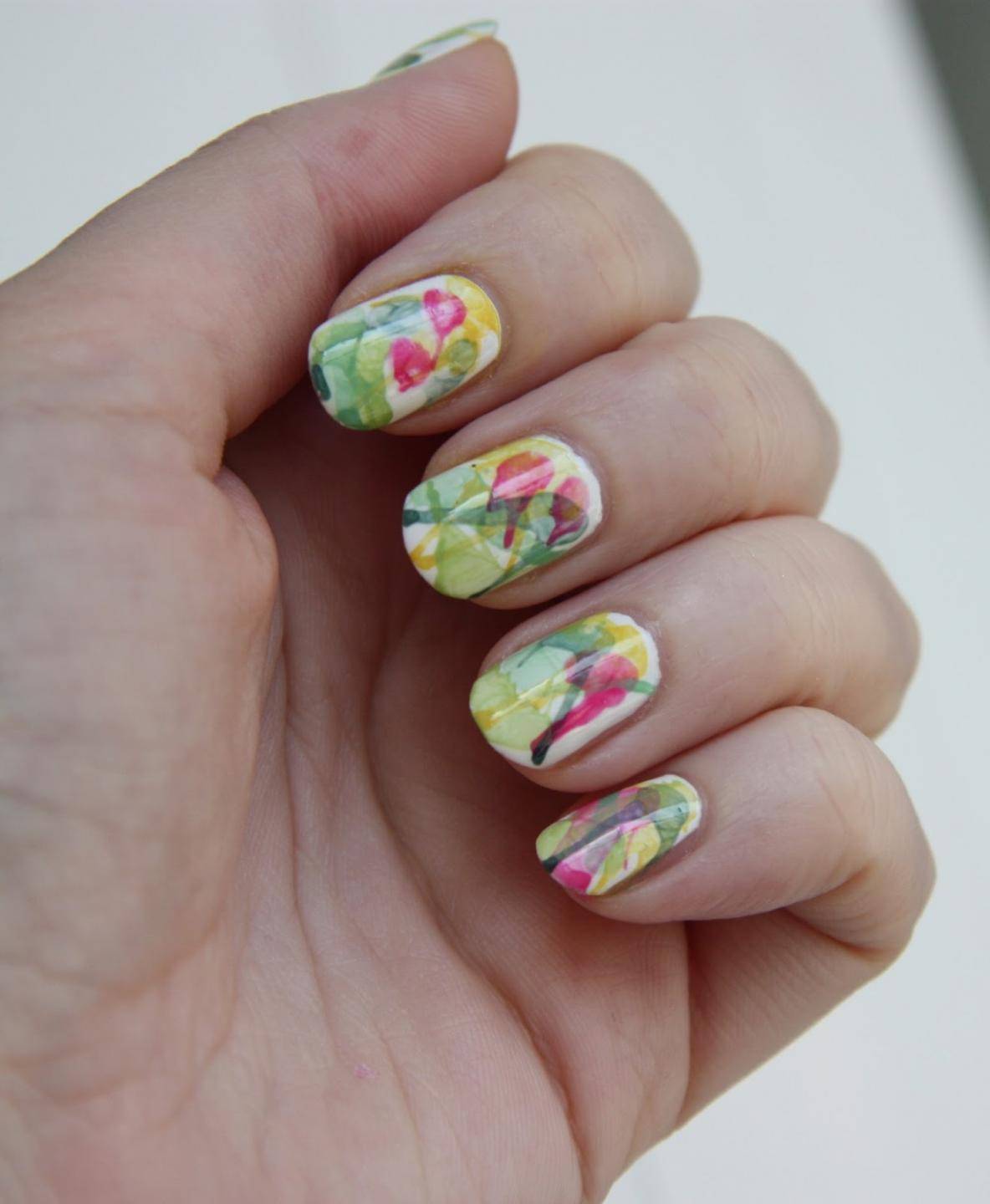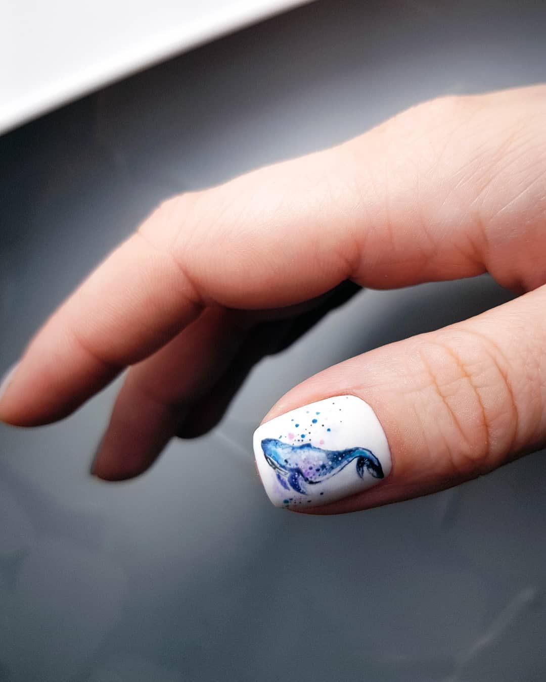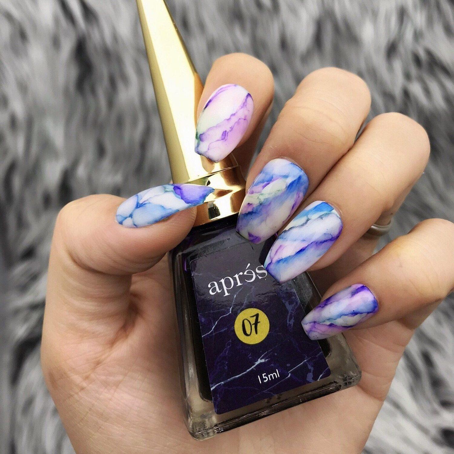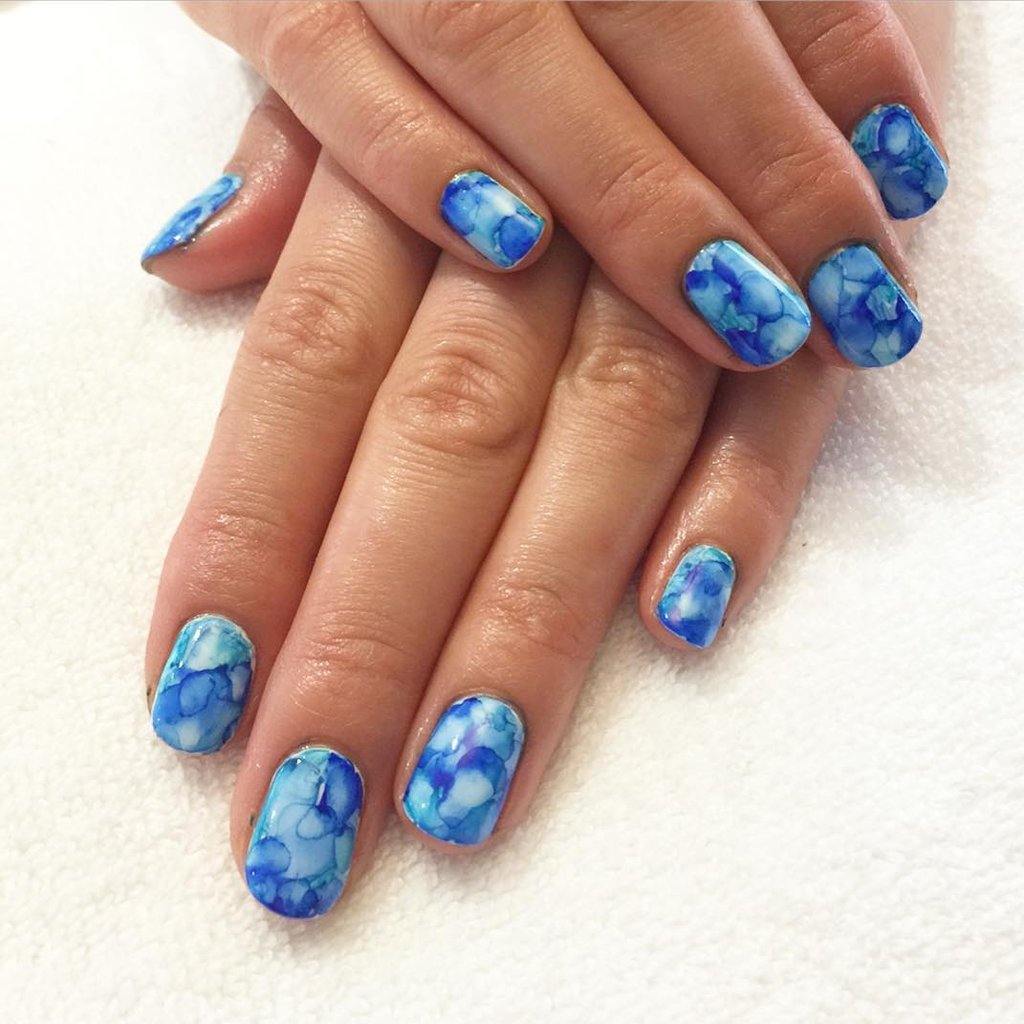 Популярностью пользуется и акварель. Как сделать акварельные разводы на ногтях? Для этого вам понадобятся акварельные краски, капли либо акварельный гель-лак. Можно также сделать акварельный дизайн, используя маркерную технику.Акварельные разводы на ногтях