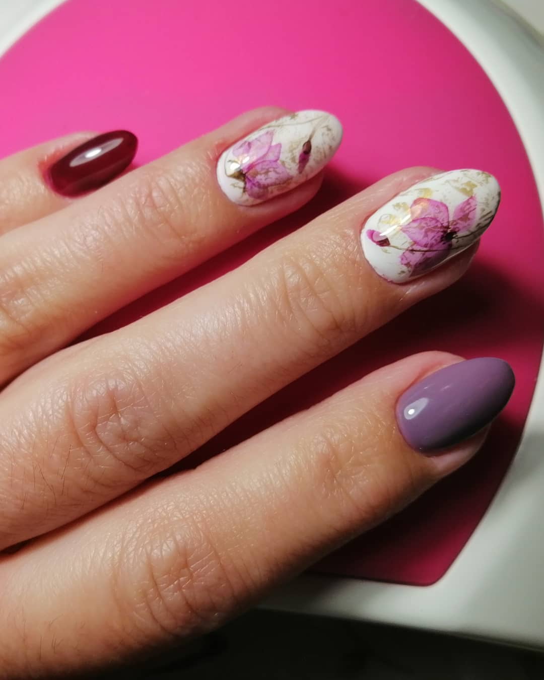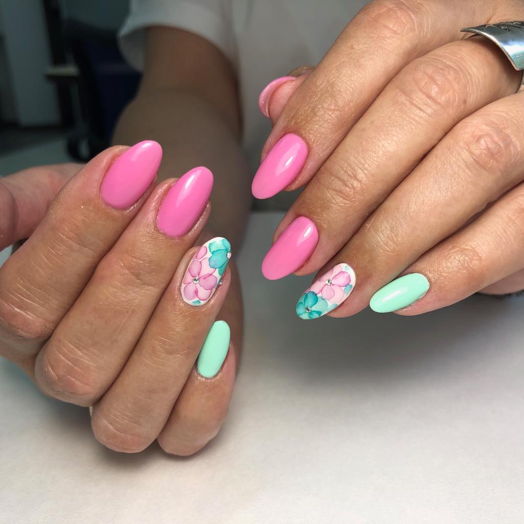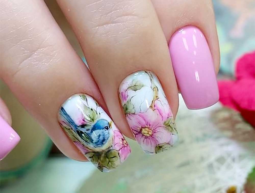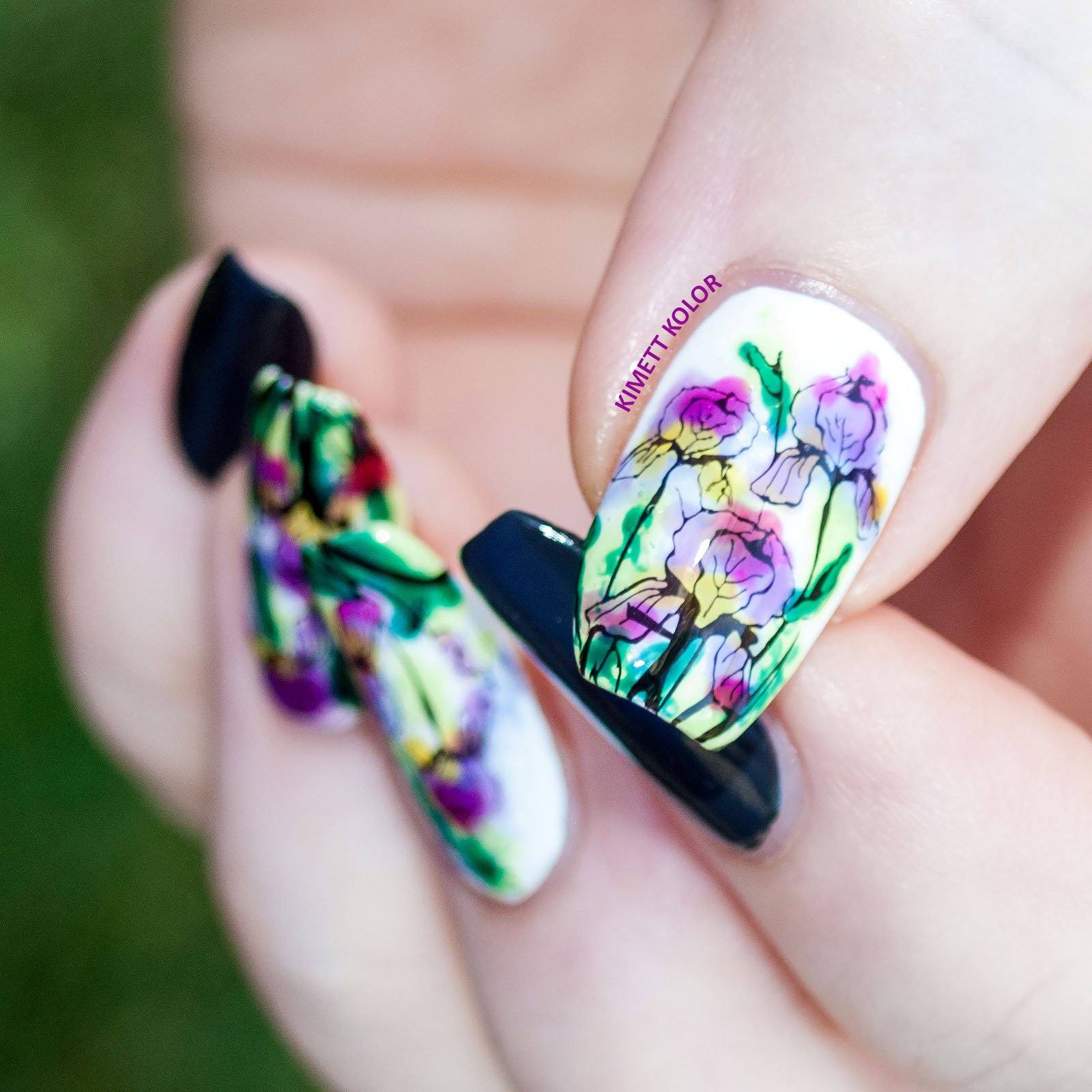 Уже многие годы цветочный рисунок – едва ли не самый популярный вид дизайна для ногтей. Его используют в качестве украшения френча, однотонного покрытия и многих других вариантов оформления. Поэтому не удивительно, что цветы все чаще наносят в акварельной технике. Это позволяет смешивать оттенки в желанных пропорциях, чтобы добиться подходящих тонов. Примечательно, что данная техника не предполагает многослойного нанесения красок. Поскольку главное – тщательно их наносить, не допуская проплешин.