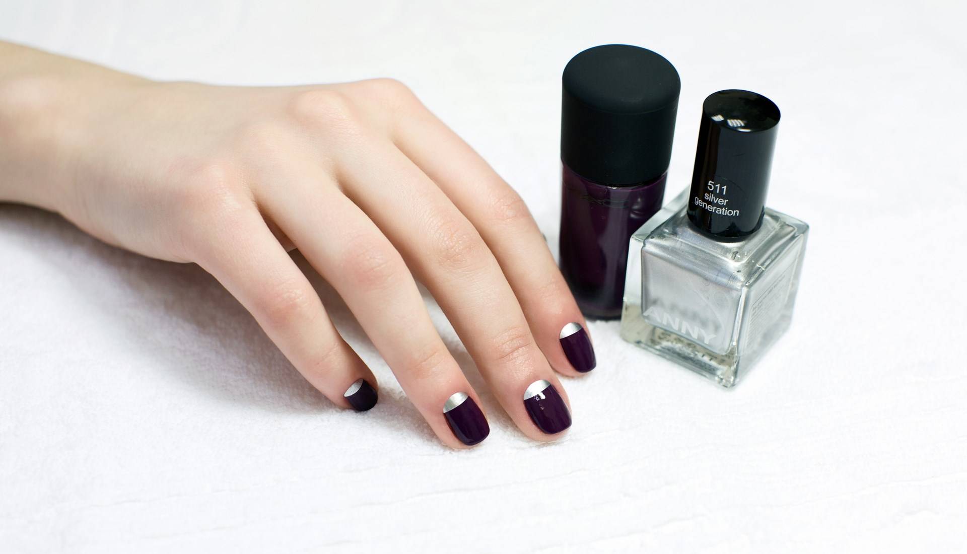 лунный маникюр, или обратный френч. Поверх слоя основного цвета нарисуйте небольшие полукруги, словно выходящие из ногтевого ложа. Выглядеть это должно так, словно из-под вашей кутикулы восходит небольшая луна. Красиво будет смотреться такой вариант украшения ногтей, если для выполнения рисунка вы выберете контрастный оттенок либо шеллак с глиттером;