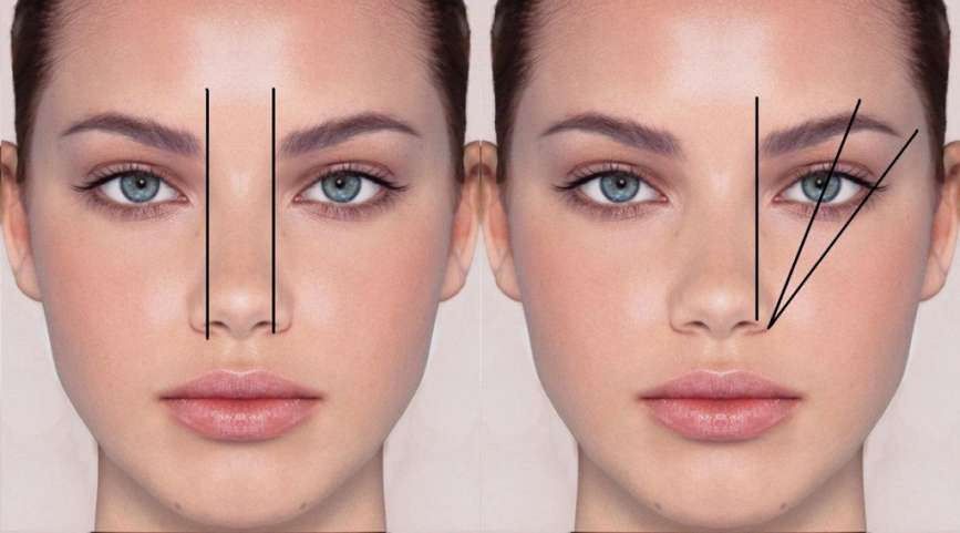 3. На вид падающих бровей указывают высокая приподнятость начала бровей и опущенность внешних краев. Такая форма бровей придает лицу вечно грустное, если не печальное выражение, делая его старше своих лет.