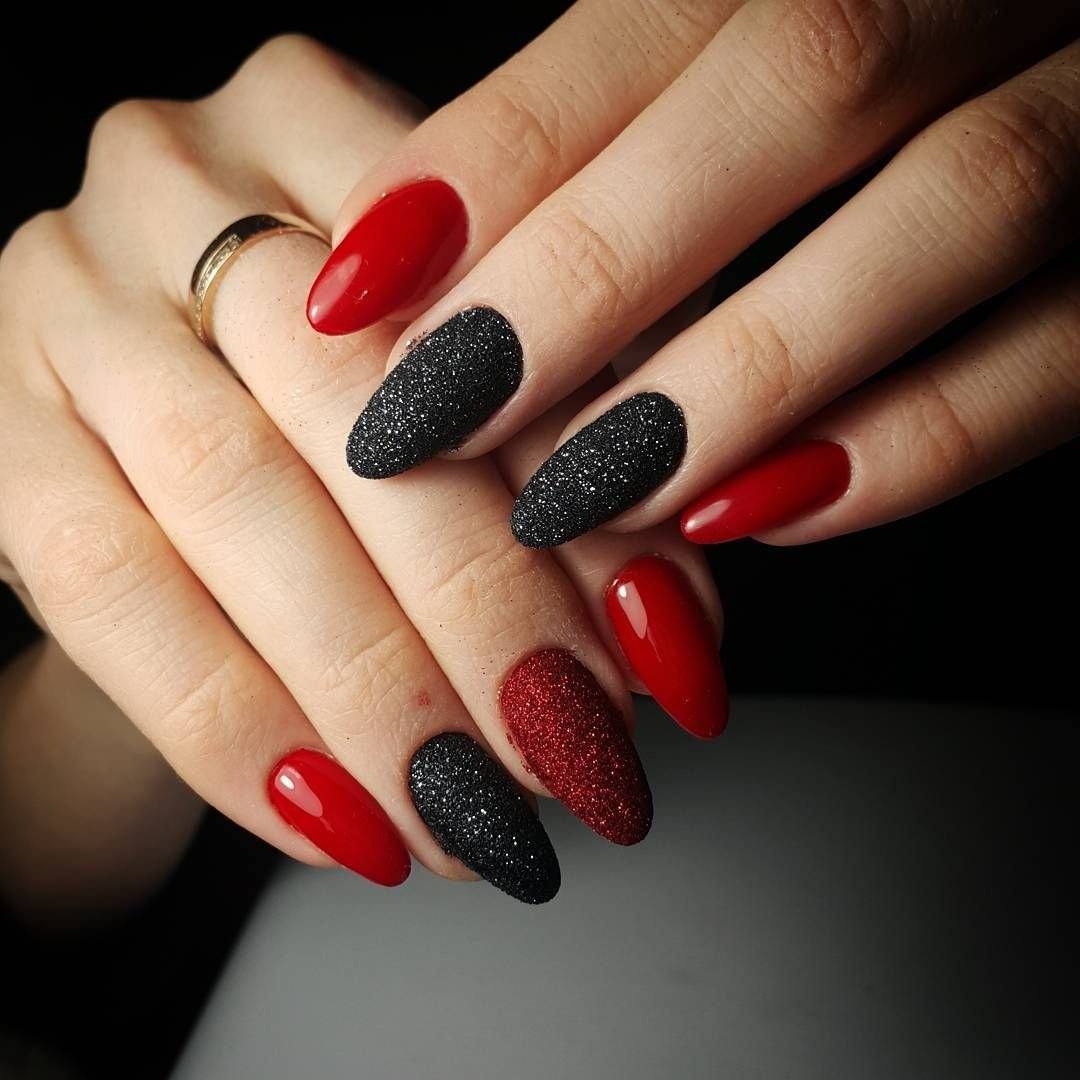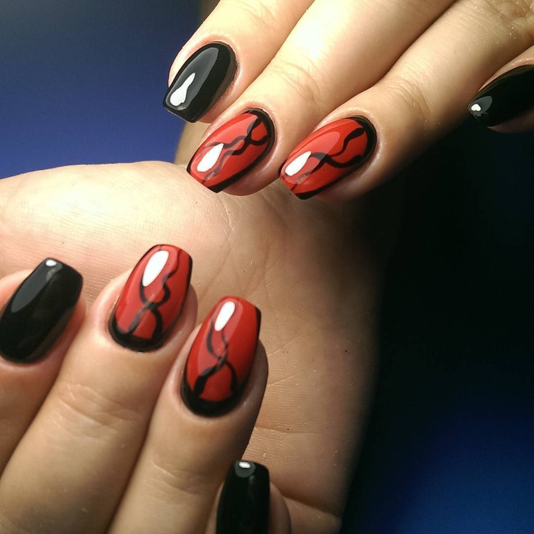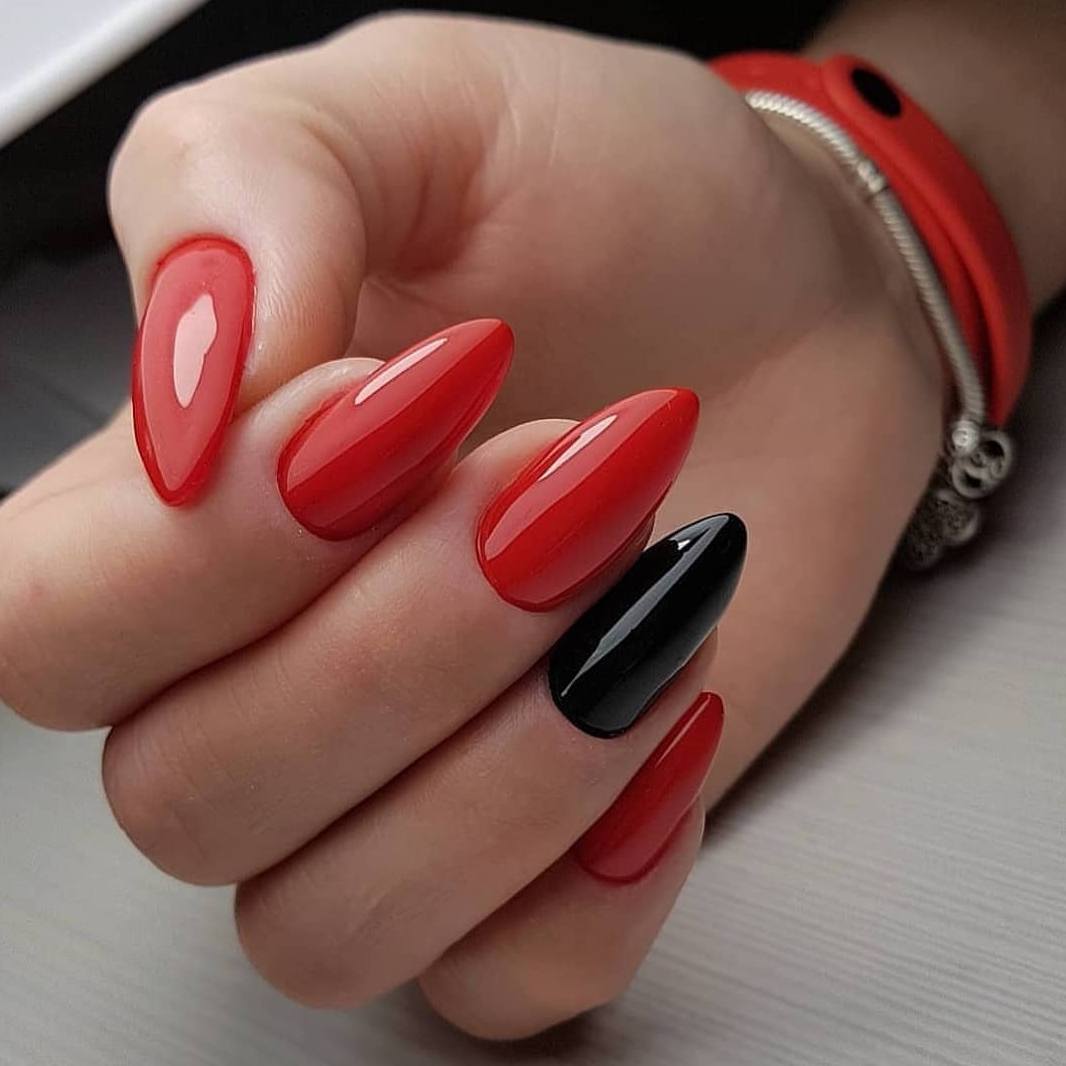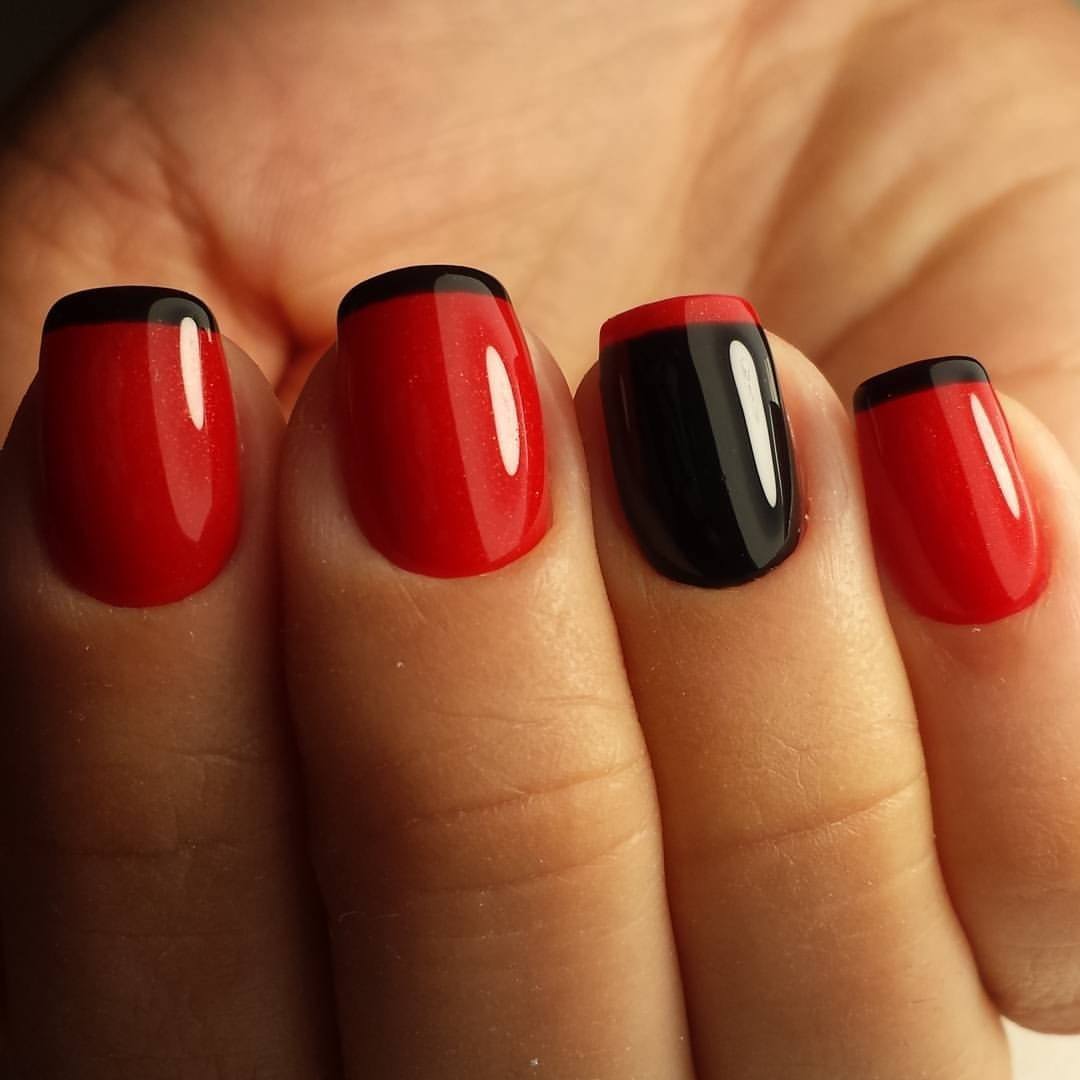 Любительницы сочетать красный и черный цвет в маникюре — это девушки, которые хотят быть в центре внимания. Красно-черный маникюр часто выбирают девушки, у которых есть строгость в стиле одежды. При удачном сочетании черного и красного цвета в маникюре, можно визуально удлинить ногтевую пластину. Красно-черный маникюр можно разнообразить блестками, втиркой, росписью белого, золотого и серебряного цвета, сочетанием глянцевого и матового лака.