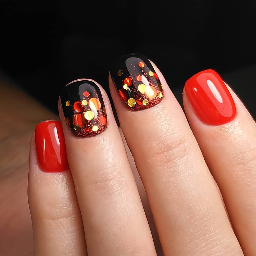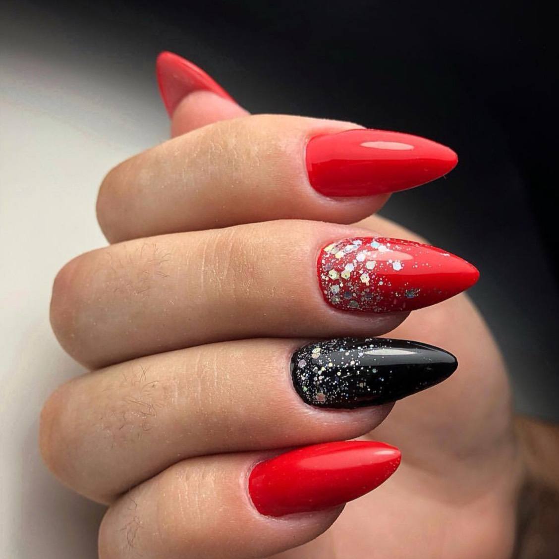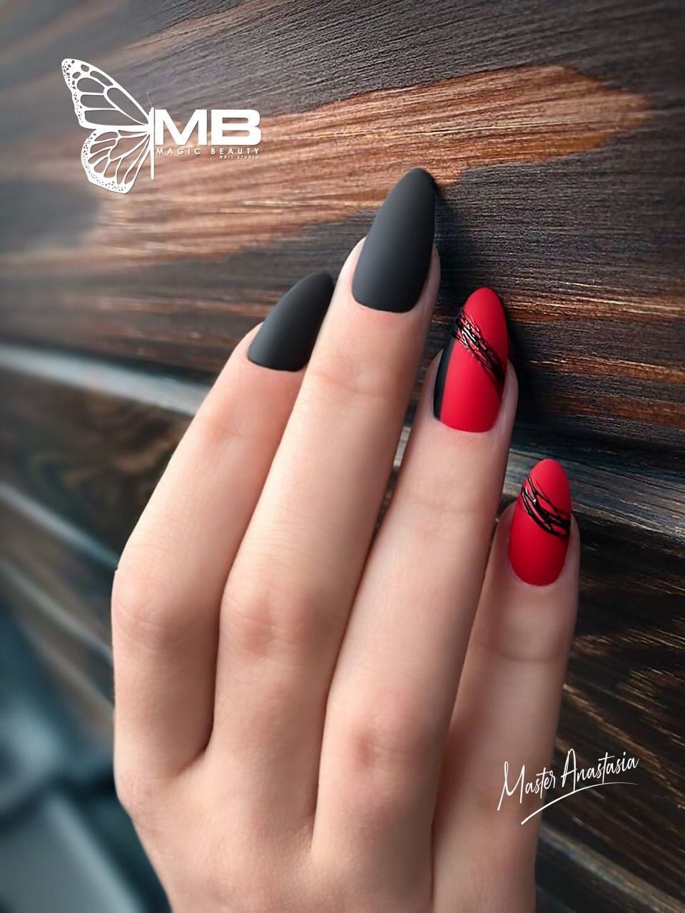 Любительницы сочетать красный и черный цвет в маникюре — это девушки, которые хотят быть в центре внимания. Красно-черный маникюр часто выбирают девушки, у которых есть строгость в стиле одежды. При удачном сочетании черного и красного цвета в маникюре, можно визуально удлинить ногтевую пластину. Красно-черный маникюр можно разнообразить блестками, втиркой, росписью белого, золотого и серебряного цвета, сочетанием глянцевого и матового лака.