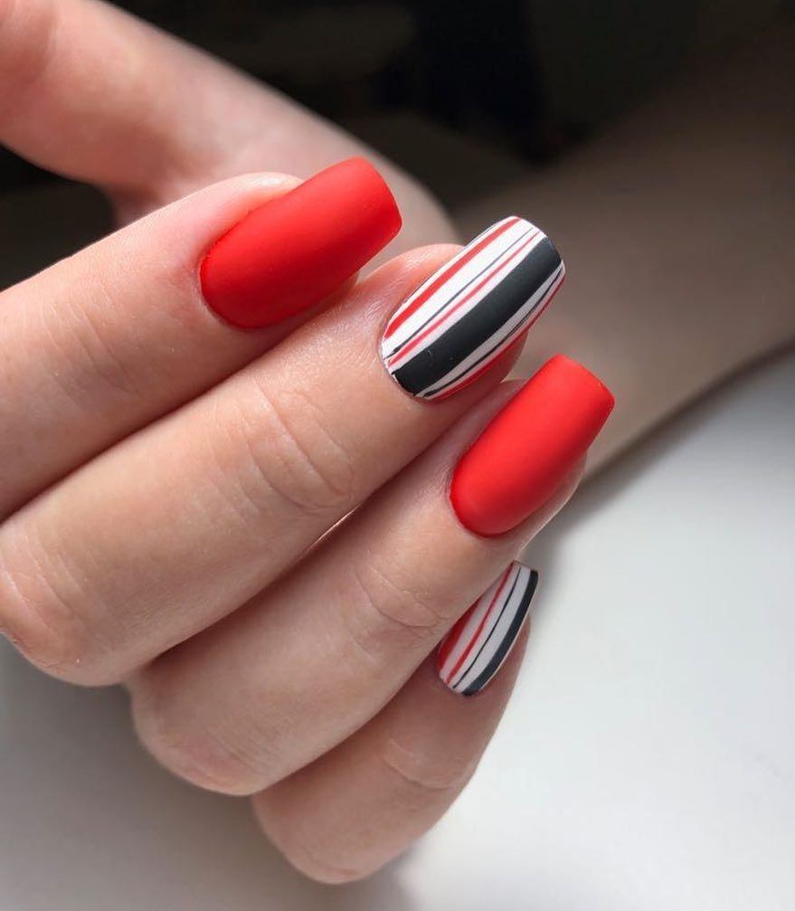 Красный маникюр с белым: фото-идеи контрастных нейл-артов