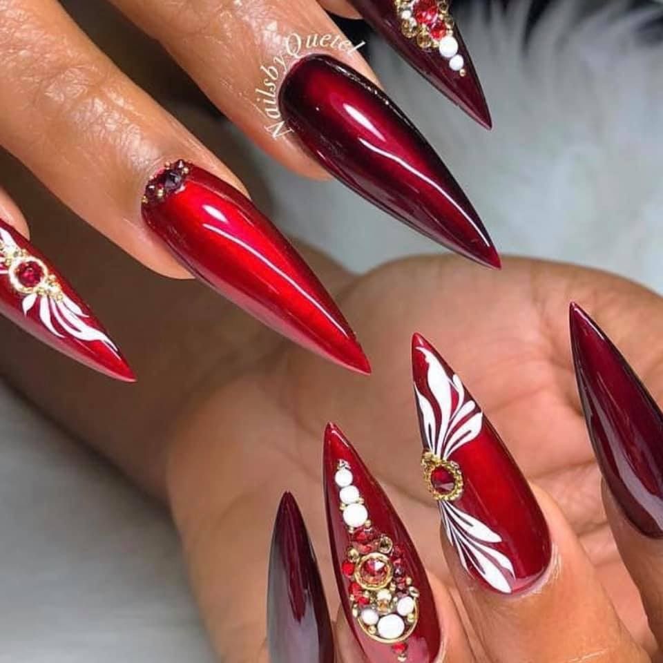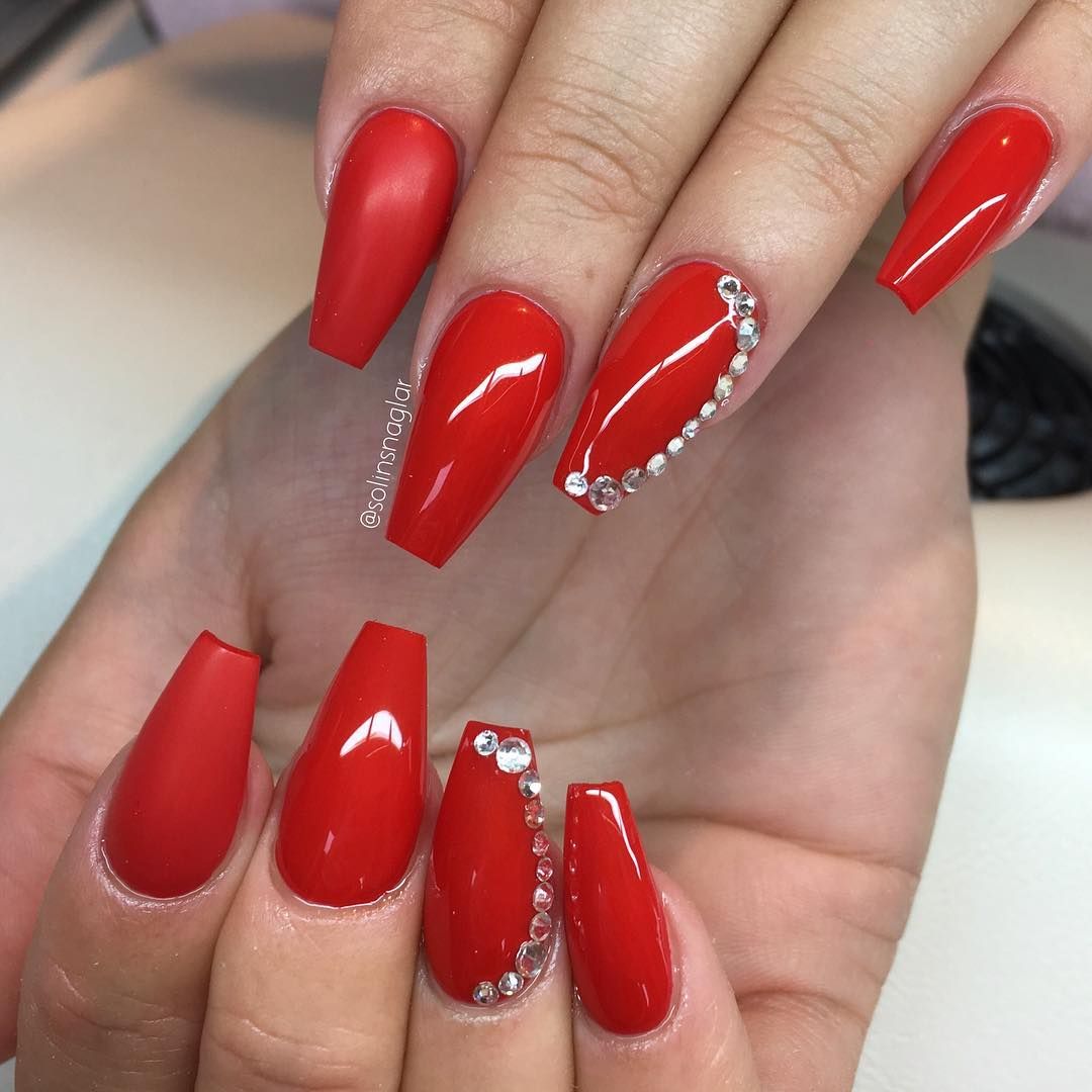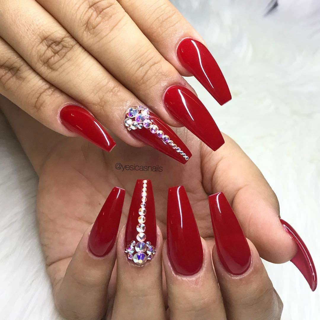 - стразы, камни, бульонки – однотонный красный маникюр в сочетании со стразами выглядит мега-стильно и благородно. Именно такой дизайн ногтей считается универсальным.