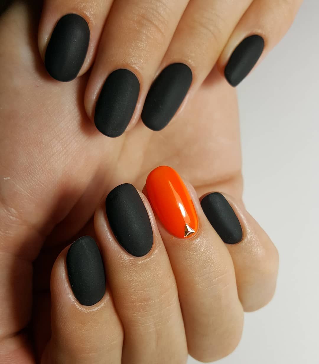 Удачное сочетание цвета и дизайна. Идея не новая, но по сей день популярная как среди любительниц маникюра, так и среди мастеров.