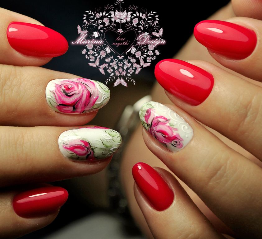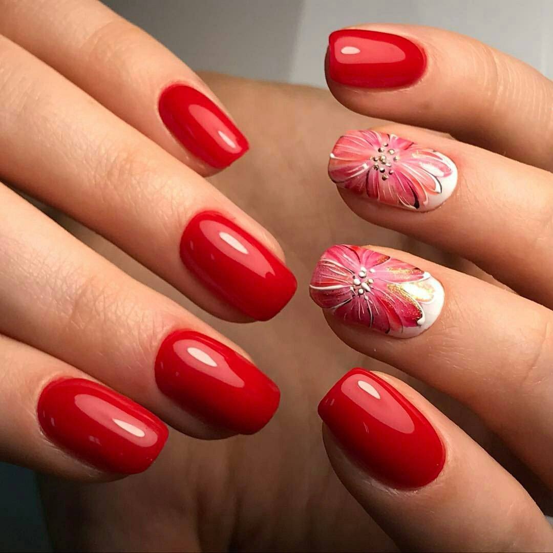 Маникюр с красными цветами: выбираем узоры для маникюра