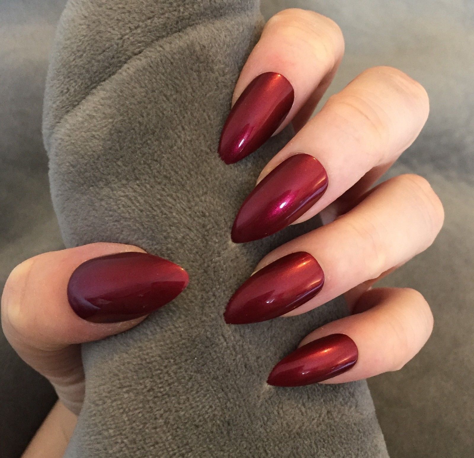 - нежелательно наносить покрытие алого оттенка на слишком длинные ногти, это смотрится вульгарно – лучше остановить выбор на тёмных оттенках бордового, вишнёвого или матовом покрытии;