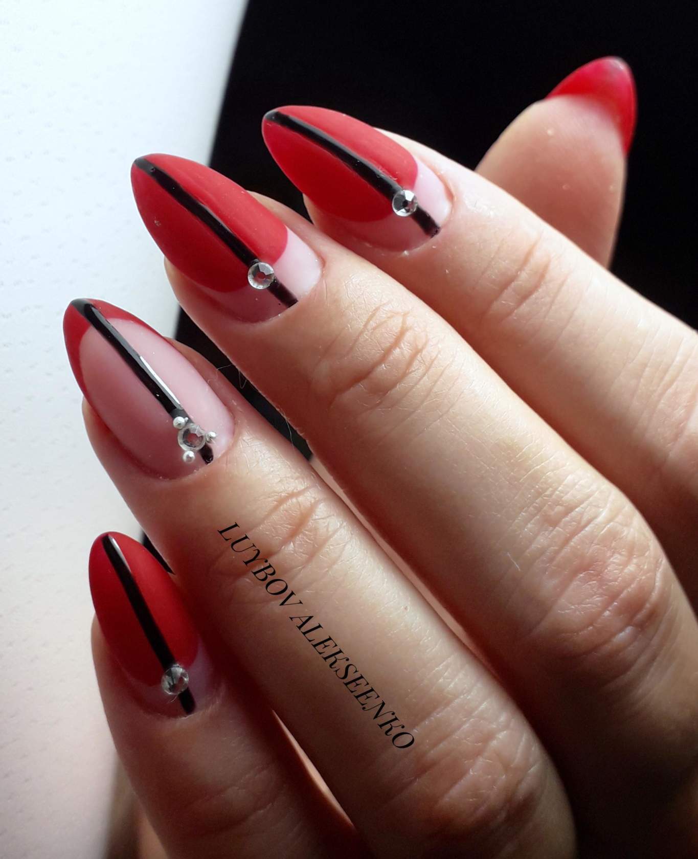 В то же время красный лунный маникюр можно сделать более особенным за счет простых украшений, вроде стразов. В этом случае мы уже получаем праздничный вариант, который подходит под особое событие.