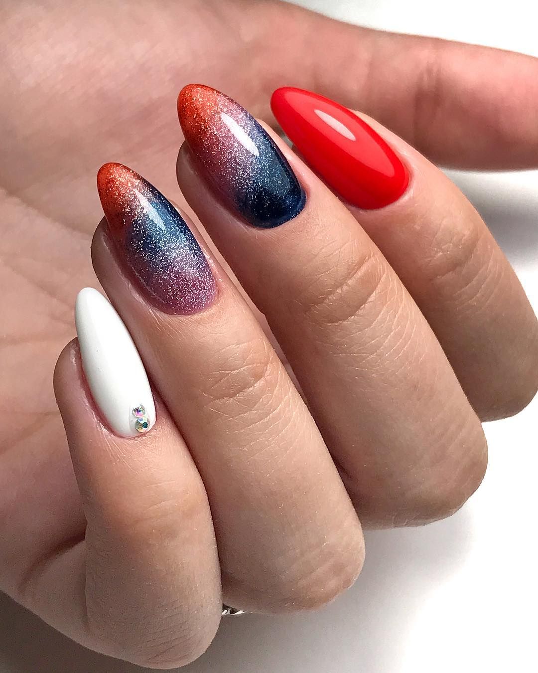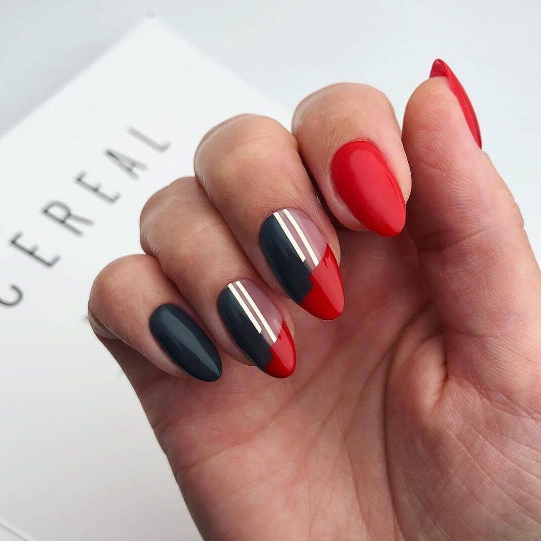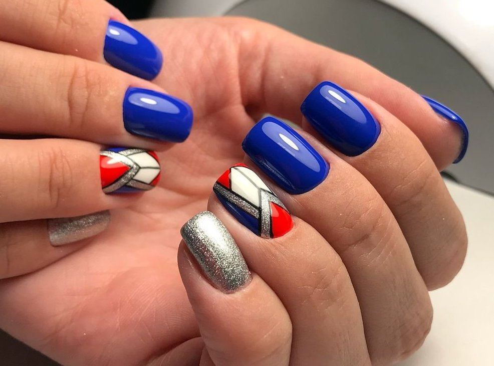 Если вы начинающий мастер, то такой дизайн поможет удивить клиентов или сделать собственные руки ухоженными. Эта идея появилась в Америке, когда стилисты решили вернуть в моду авангардный стиль, адаптировав его под современные тенденции. Уже больше 10 лет комбинация красного и синего оттенка считается признаком безупречного вкуса, поэтому самое время сделать маникюр: