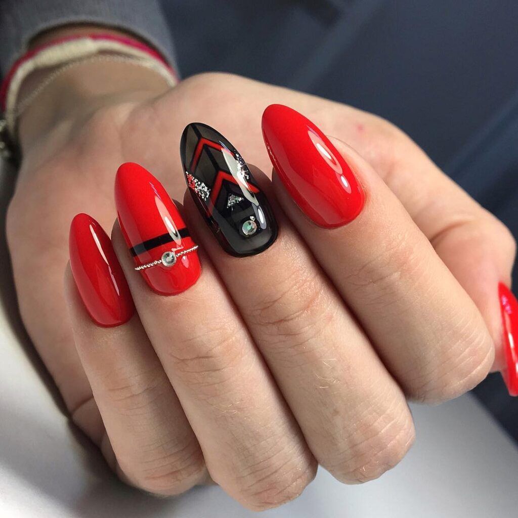 Маникюр красного цвета с дизайном 2020: актуальные идеи дизайна ногтей