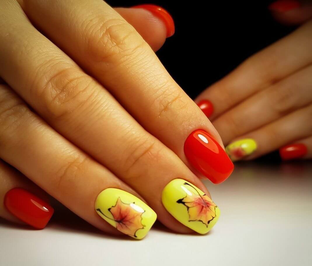 Флористический дизайн занимает неотъемлемую часть во многих видах маникюра. В 2020 году он слегка сменил свое направление. Теперь в моду вошли минималистические рисунки в виде тонких веточек, изящных лепестков и акварельного пейзажа. Самыми популярными считаются серебряные росписи на красном фоне и красный орнамент на спокойном оттенке. Но стоит помнить, что данный вид дизайна может располагаться только на двух, а то и одном ноготке. Довольно оригинально смотрится рисунок в виде лепестков, контур которых выделен при помощи бульонок или страз.