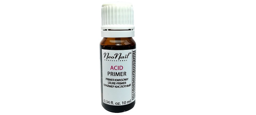 Кислотный праймер (acid primer) — основным компонентом большинства Acid Based праймеров является метакриловая кислота. Праймер глубоко обезжиривает и обезвоживает ногти. Способствует открытию чешуек ногтевой пластины, которые поднимаются и позволяют зацепиться за них материалу для наращивания ногтей, таким образом формируется крепкая связь. Этот праймер преимущественно применяют при наращивании ногтей. Его нужно обязательно использовать перед наращиванием ногтей гелем или акрилом. Помимо обеспечения хорошей сцепки материала с ногтем, праймер также лишает ногти среды для развития микроорганизмов. Если ногти не обработать праймером перед наращиванием, после наращивания возникает парниковый эффект, количество микробов увеличивается и поскольку в гель они проникнуть не могут, то начинают проникать в ноготь. Сначала на ногтевой пластине появляются зеленоватые пятна, потом они становятся коричневатыми, следующая стадия – развитие онихомикоза. В обязательном порядке кислотный праймер нужно наносить на «проблемные» ногти, т.е. сильно жирные, глубоко посаженные, обгрызенные и особенно, если у клиента влажные руки. Незаменим кислотный праймер и при наращивании на ногах.