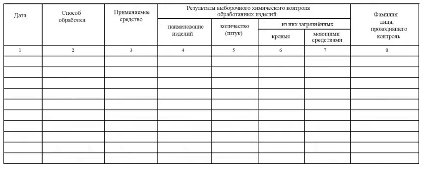 В журнал вносится только отрицательная проба, при положительной – дезинфекция и ПСО проводятся повторно до достижения отрицательного результата.