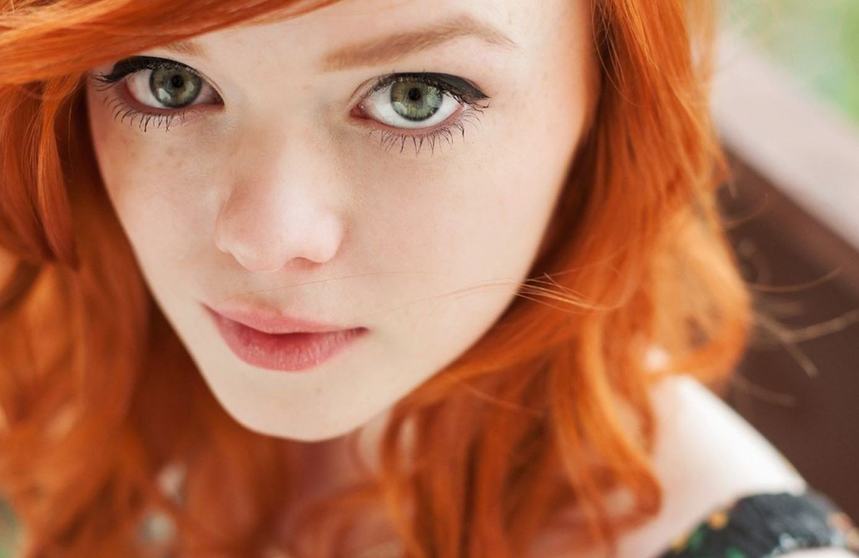 Рыжеволосым владелицам голубых радужек лучше не использовать зеленые тени, особенно в повседневном мейке. Как мы уже писали выше, с помощью некоторых методов можно скорректировать цвет радужки. У рыжих девушек это делают следующим образом:
