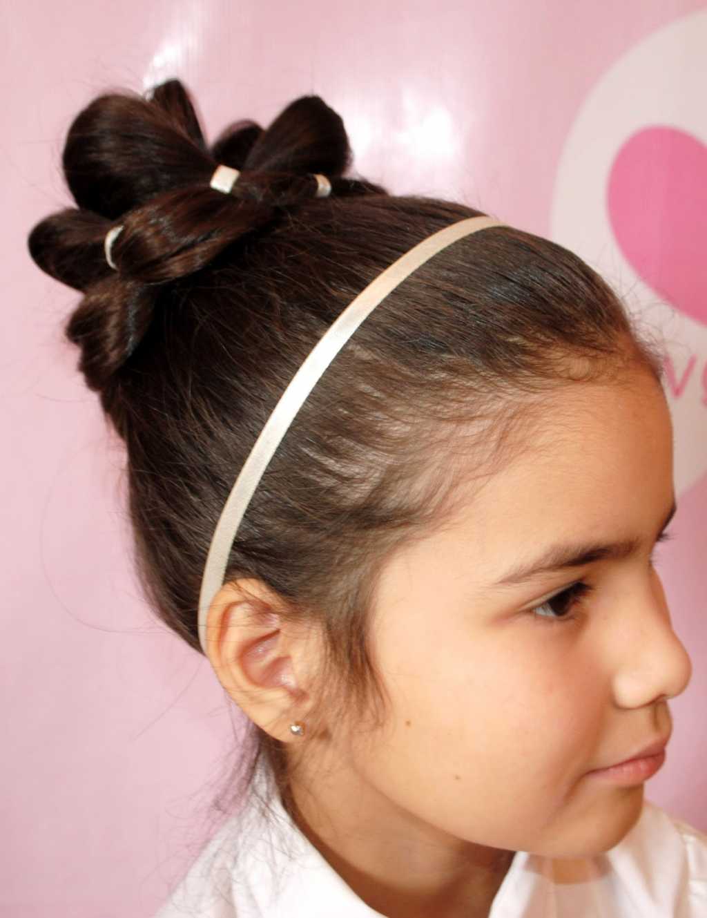 - Завершите прическу красивой широкой лентой, которую расположите у основания.