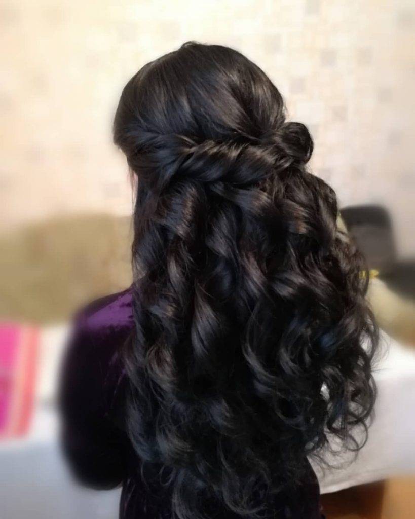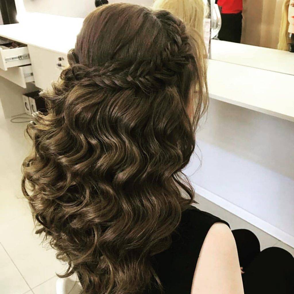 Такая укладка будет отличным выбором для обладательниц вьющихся волос. Можно дополнить локоны плетением.