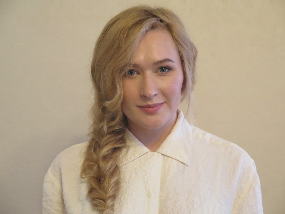 Верхние боковые косы будут на виду, вы можете заплести «рыбий хвост» хоть модель и выбрала сделать обычные косички.