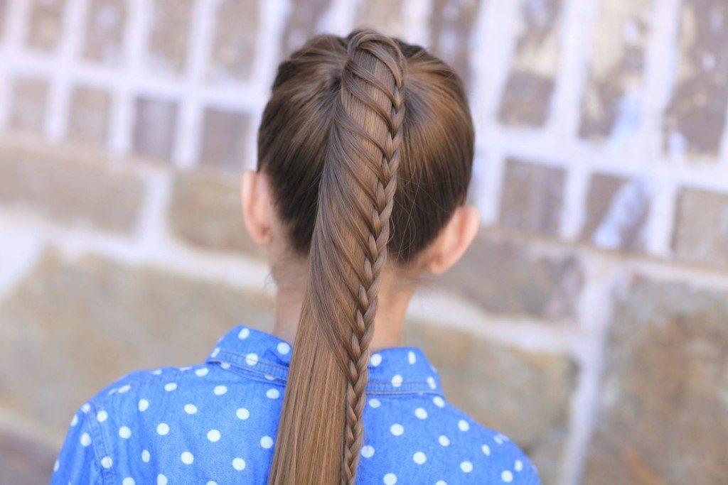 Плетение с помощью хвостиков также станет оригинальным вариантом причёски для школьницы. Украсить такую прическу можно маленькими заколками «крабиками». Создаётся подобная причёска с помощью маленьких резиночек, которые уже изначально могут иметь праздничные бусины или стразики.