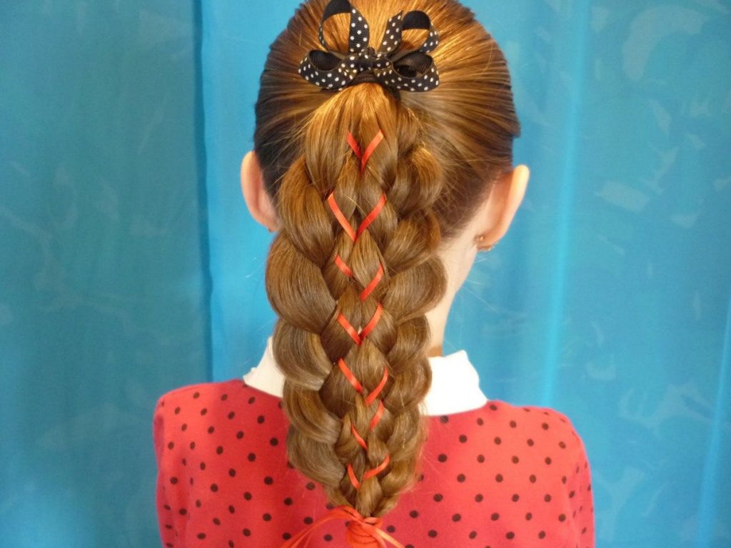Как заплести косу с лентой, вы можете посмотреть на следующем видео: