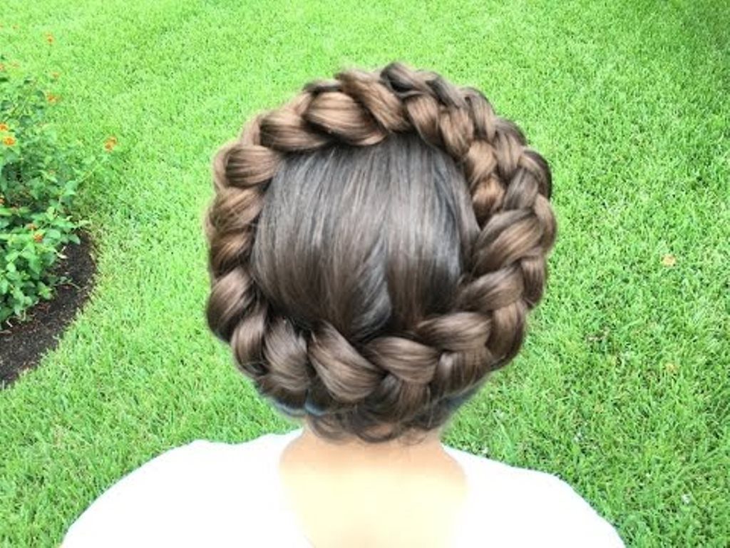 Для оформления волос, таким образом, необходимо подготовить шпильки и невидимки. Для формирования прически необходимо расчесать волосы по сторонам, чтобы посредине образовался пробор. Затем следует закрутить жгуты по сторонам и в лобной части. Несколько раз соединить прядь с нижней части головы с центральными волосами и височной частью, формируя плетение. При необходимости воспользоваться шпильками для надежной фиксации. Повторить процедуру с другой стороны. Если во время процесса выступают отдельные волоски, то их нужно заколоть шпилькой. Чтобы придать оформлению законченный вид, прическу рекомендуется украсить бантиком, ленточкой или ободком.