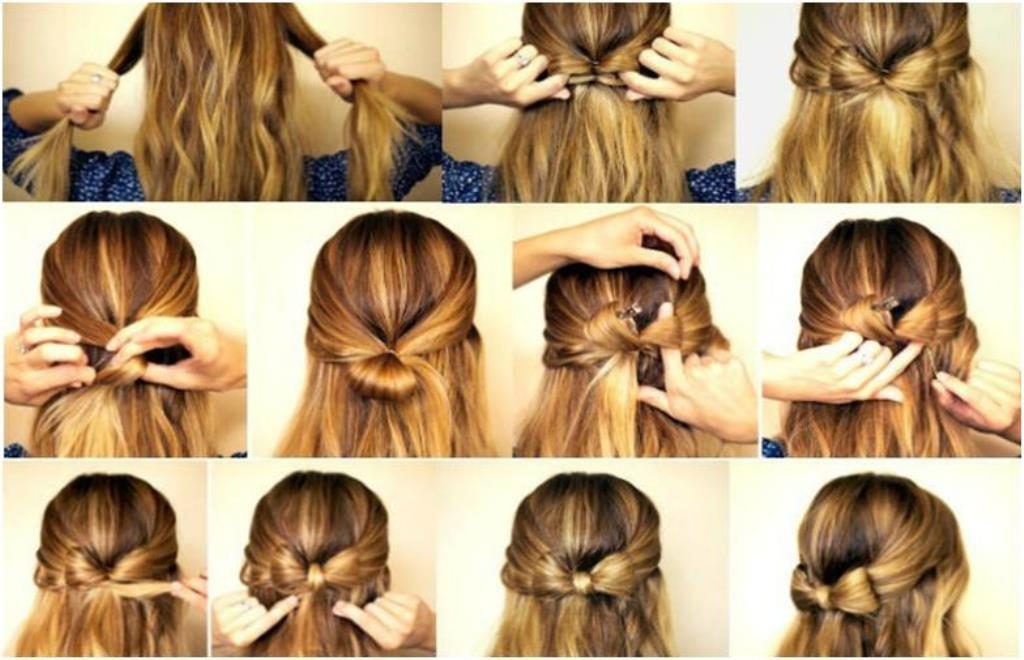 Такая укладка подойдет для средних и длинных волос. Чтобы сделать аккуратный бантик самостоятельно, следуйте инструкции: