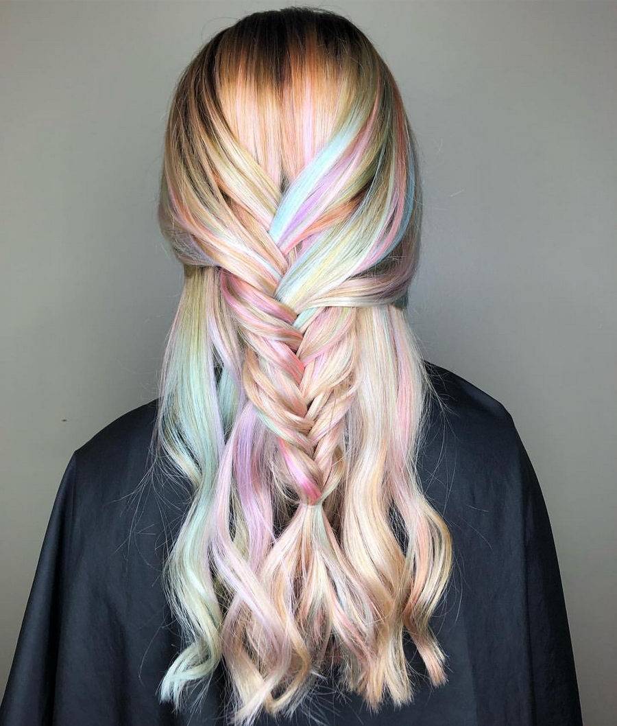 - Перейдя за пробор, завершаем колосок обычной косичкой.
