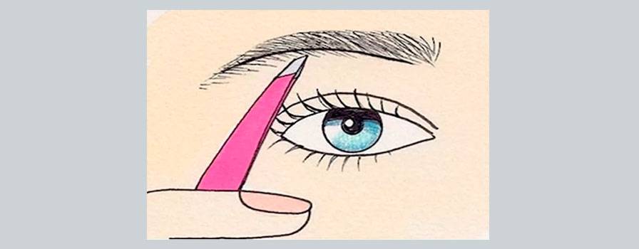 - Опустите кисть так, чтобы один конец упирался в крыло носа, а другой визуально проходил через внешний угол глаза. Там где кисть пересекается с бровью, и есть ее окончание.