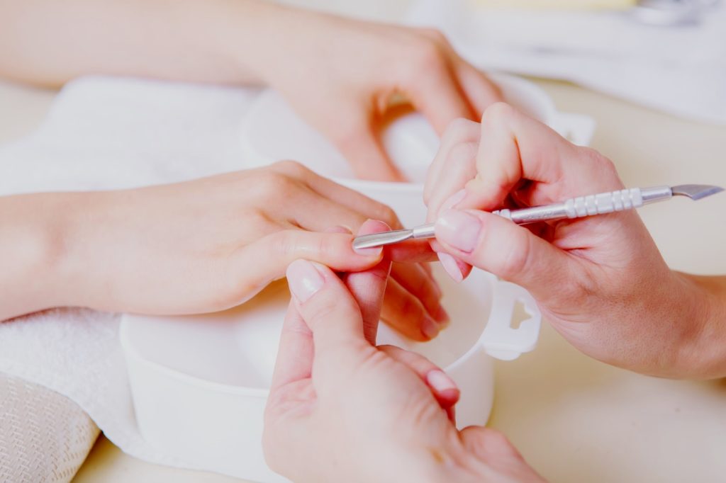 Прежде чем использовать шабер для маникюра, ногтям следует придать желаемую форму и для лучшего отхождения кутикулы распарить их