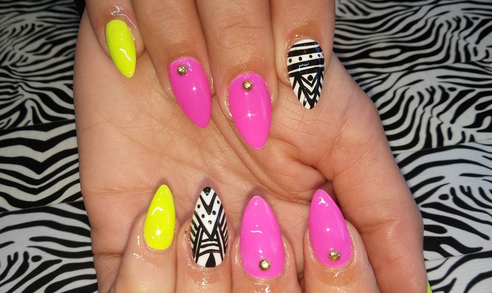 - неоновые оттенки также стоит украшать по минимуму: камушки или стразы, небольшое количество фольги.