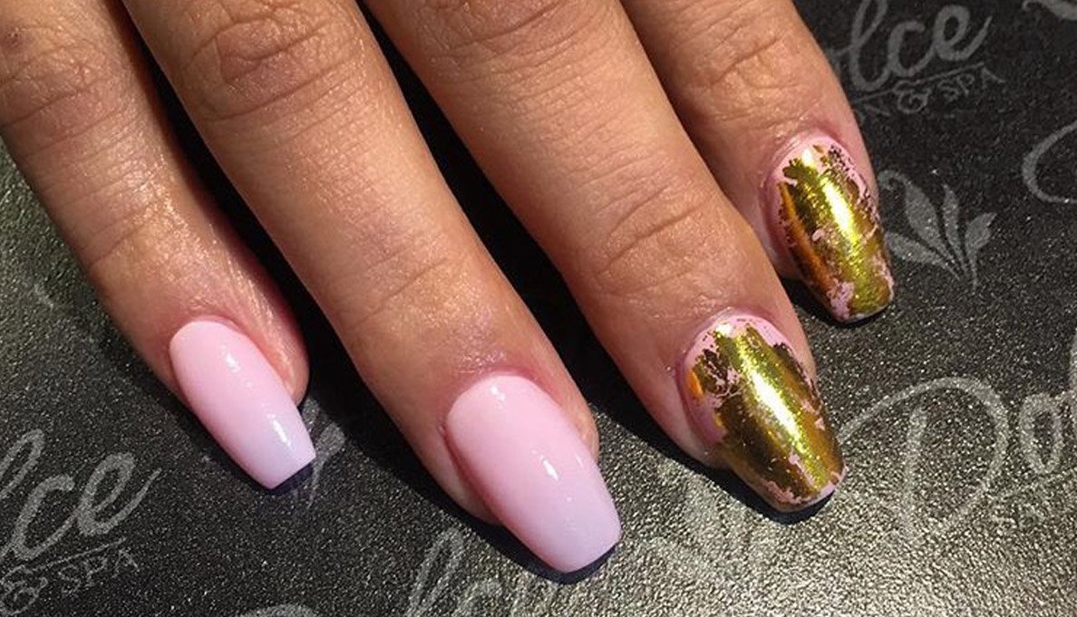Ими декорируют отдельный участок ногтевой пластины или всю поверхность. Можно чередовать розовый и блестящий. Так маникюр будет выглядеть красочно и ярко. Если необходим более спокойный внешний вид ногтей, то блестящими деталями украшают 2 ногтя на каждой руке.