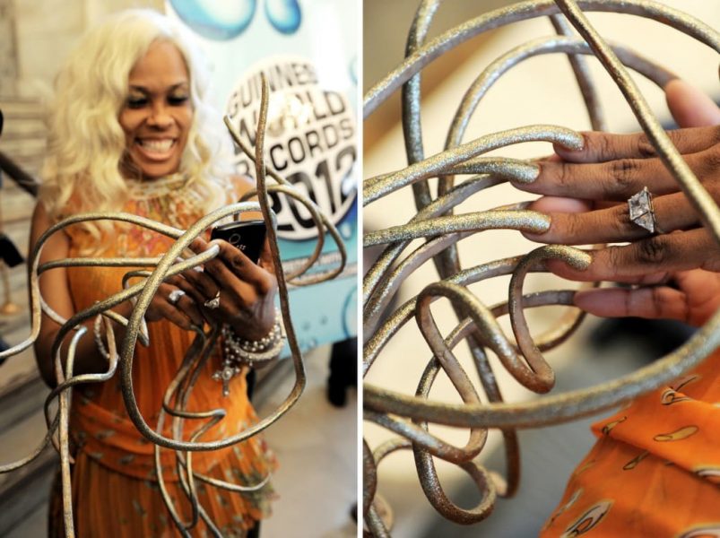 Есть целый ряд девушек и женщин, которые мечтают иметь самые длинные ногти в мире. Однако отращивание занимает немало времени, поэтому Книга рекордов Гиннеса не пополняется такими рекордами постоянно. При этом выглядят самые длинные ногти, мягко говоря, не очень эстетично.