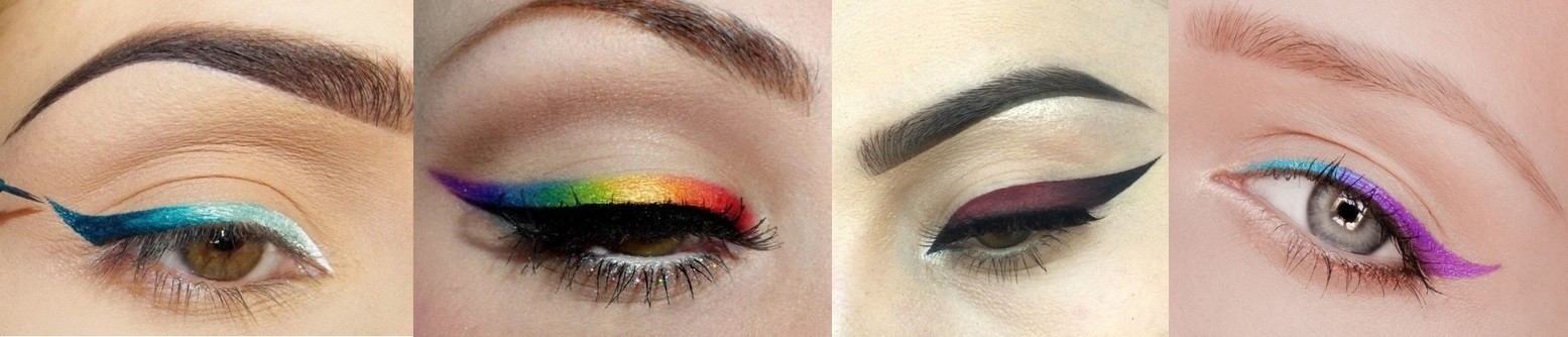 . Как понятно из названия, такие цветные стрелки не подпадают под классические каноны макияжа, а создаются креативно, так, как подсказывает фантазия. Ниже для вас небольшая фото подборка с различными фантазийными стрелочками.