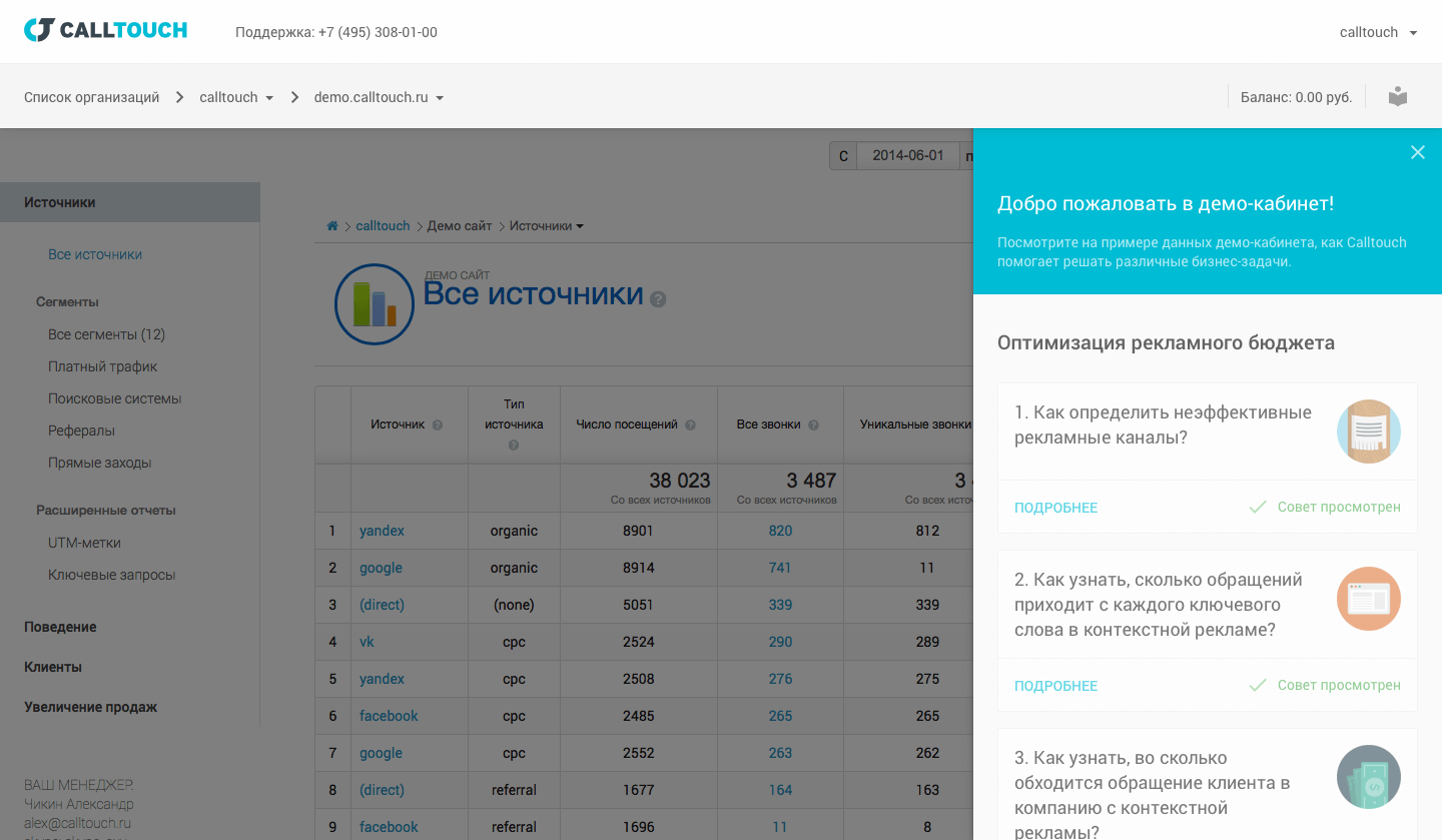 Calltouch – система сквозной аналитики, коллтрекинга и управления рекламой