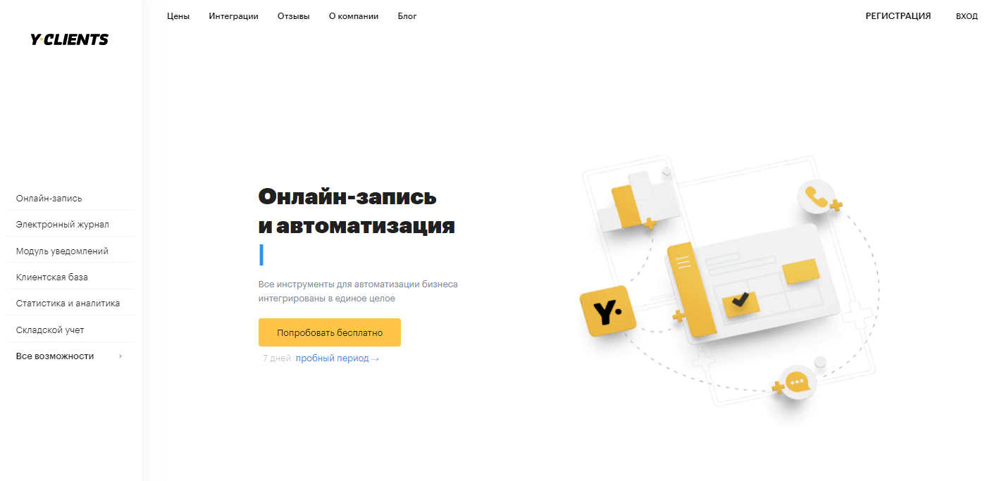 Yclient это CRM-система с функцией онлайн-записи. Форму можно разместить на сайте, а также практически на всех внешних ресурсах. Оформление понятное, полностью адаптированное для работы в сфере услуг.