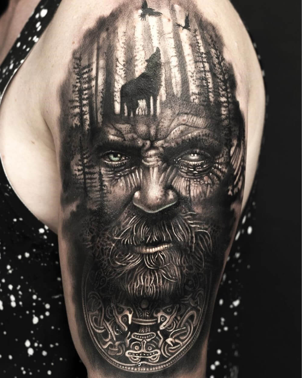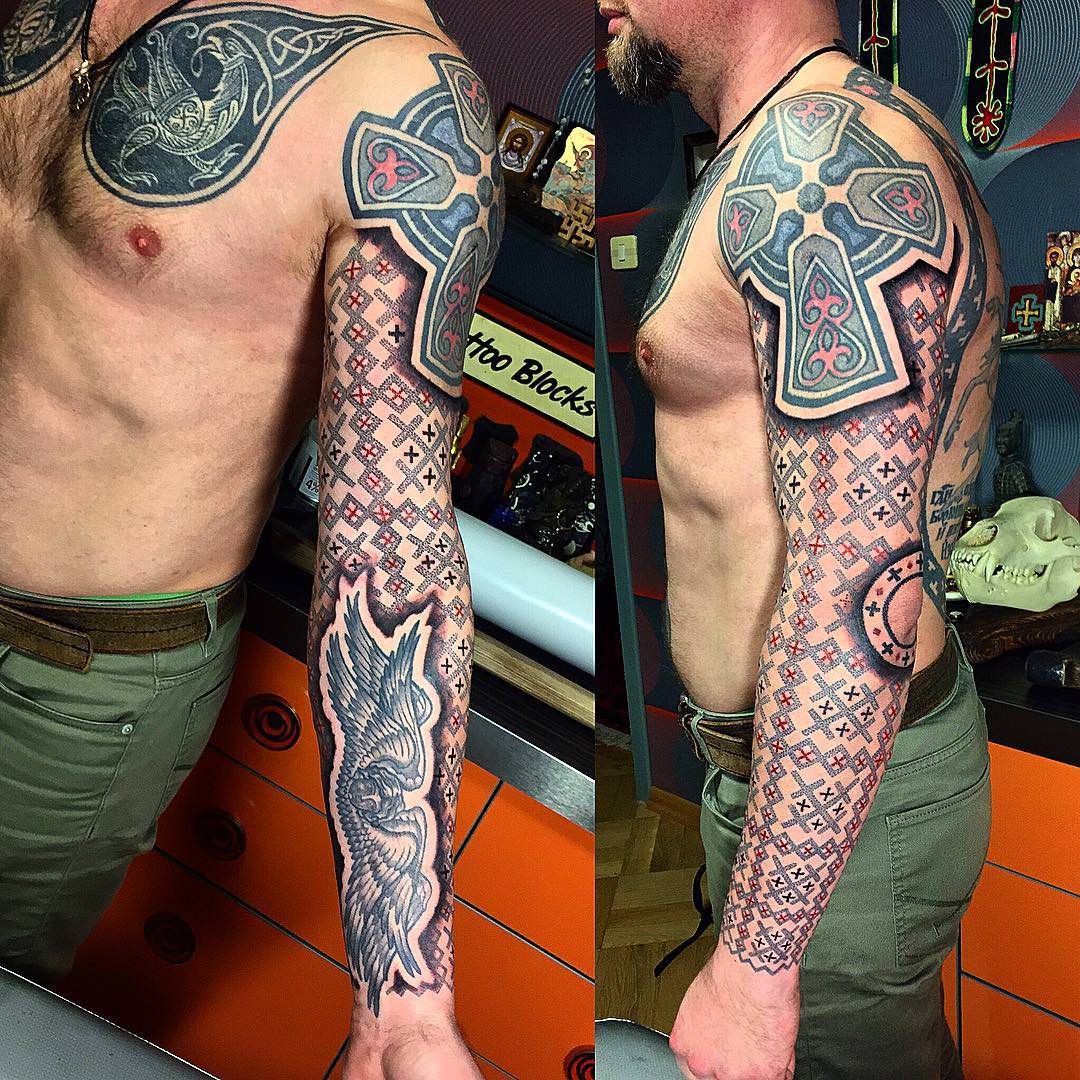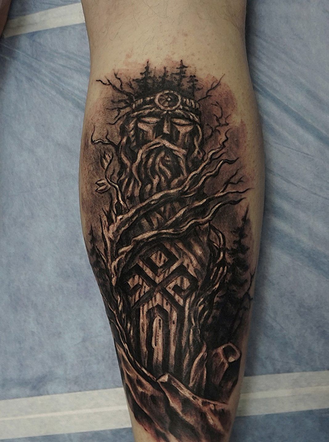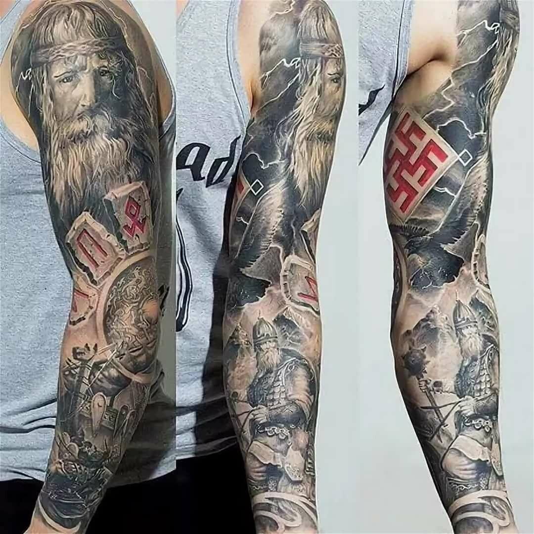 Темой славянской татуировки могут быть мифические персонажи, древние символы, легендарные личности