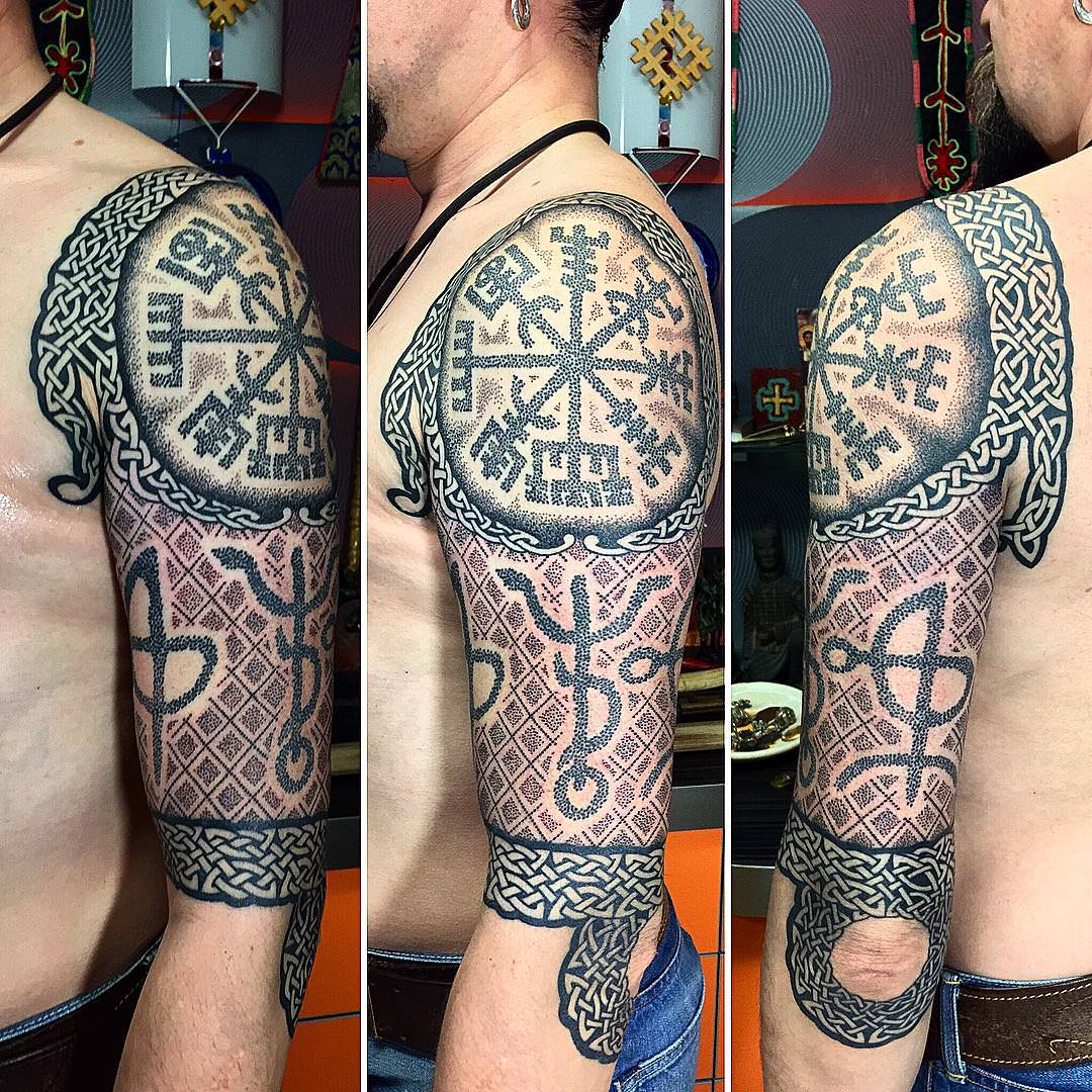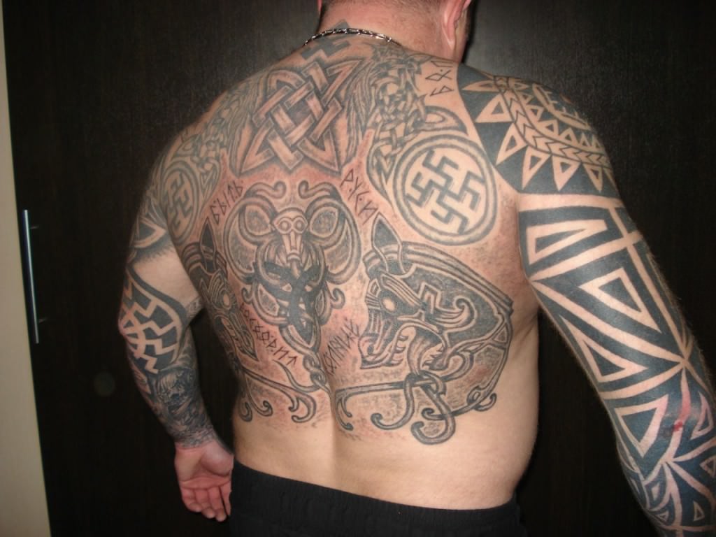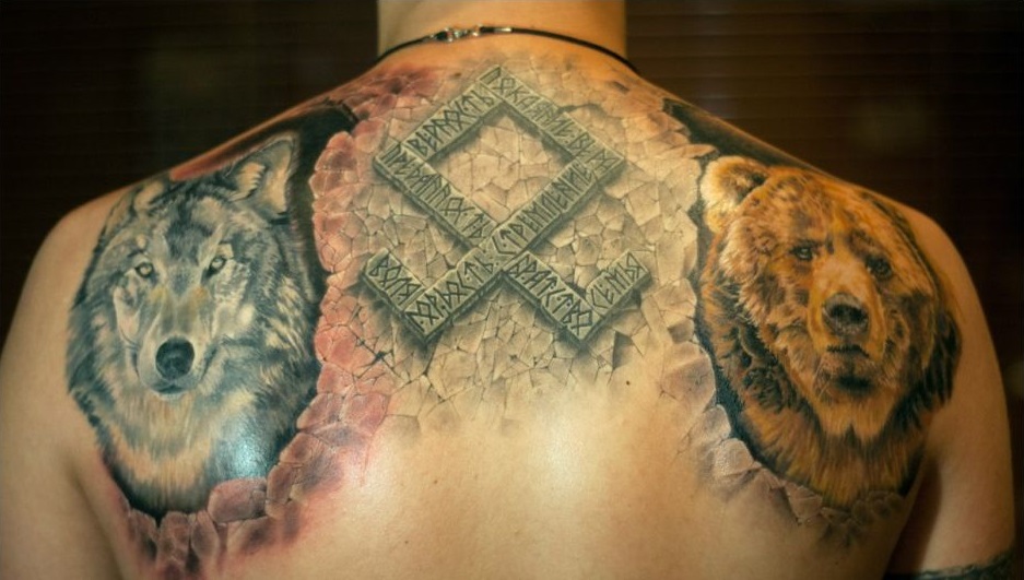 Таким образом, нанеся несколько рун на тело, можно было стать значительно сильнее и выносливее. Для защиты от нечистой силы на коже изображали различные обереги в виде узоров. Сейчас люди (чаще мужчины) делают тату в виде того или иного языческого бога, животных и мифических существ. На смену китайским иероглифам пришла славянская тематика, со всей её символикой и культурой.