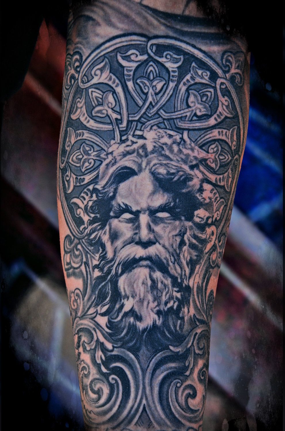 К славянскому стилю относят и изображения портретов языческих богов, которые наделяли своей силой носителя татуировки. В современном мире никто уже не стремиться привлечь расположение высших сил, но их колоритные и красочные изображения притягивают своей оригинальностью и выразительностью.