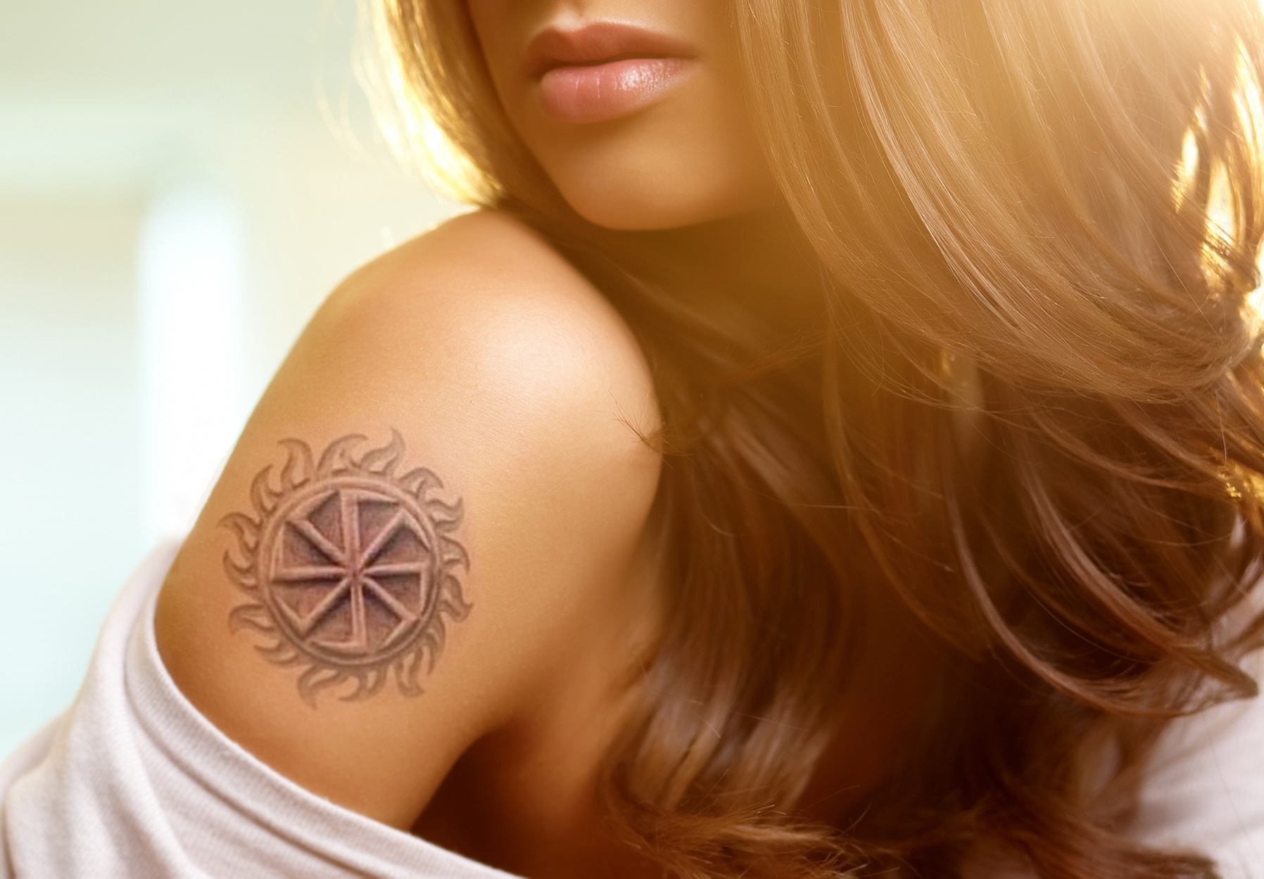Женские славянские татуировки обычно наносятся в местах, где они могут подчеркнуть красоту женского тела и стать украшением. Это, как правило, плечи, лодыжки, запястья и область поясницы. Великолепно смотрится тонкий орнамент со славянской символикой на шее.