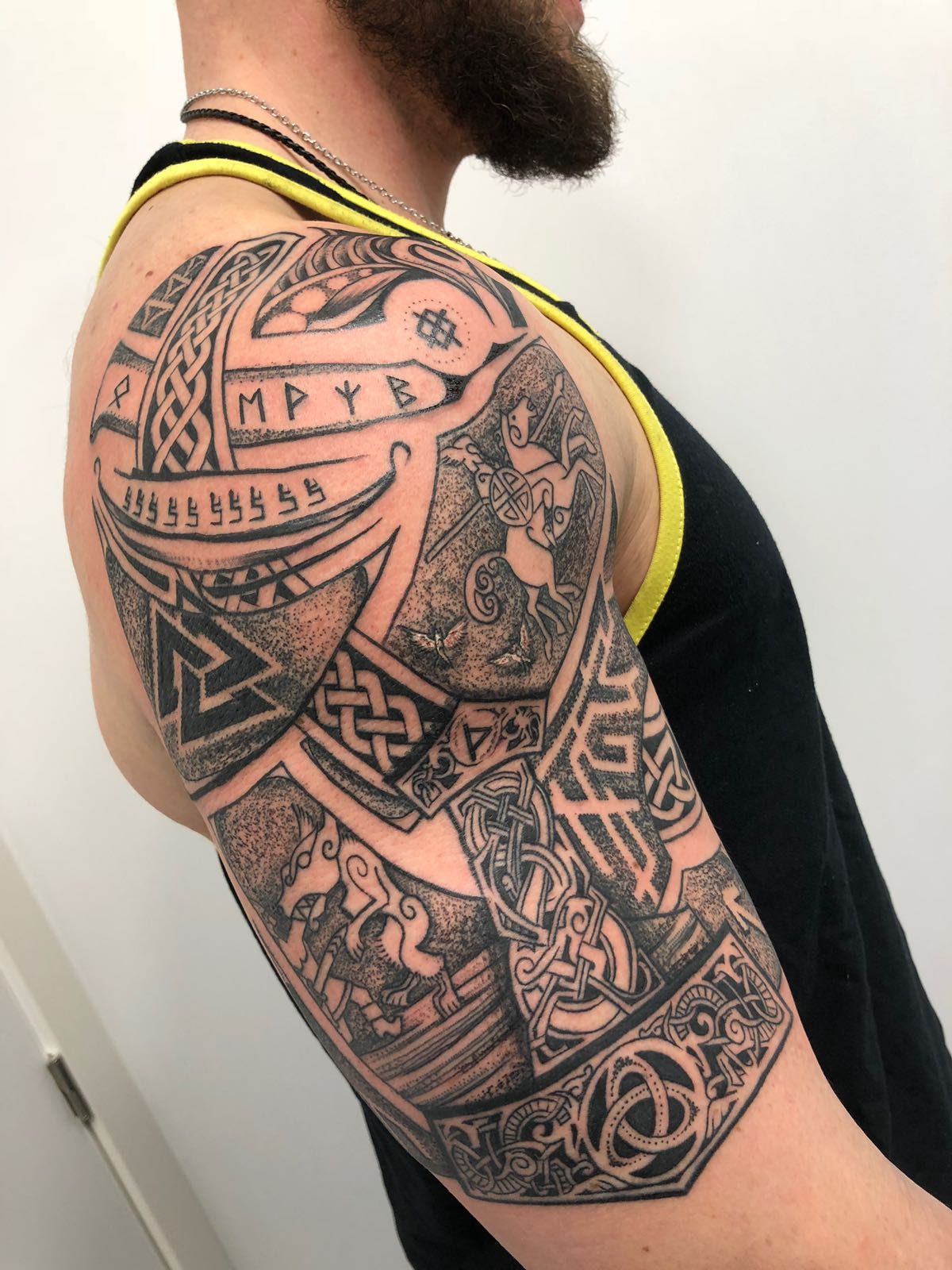 Все тату в этническом или народном стилях необычны, колоритны и самобытны, особенно если используется национальный орнамент.