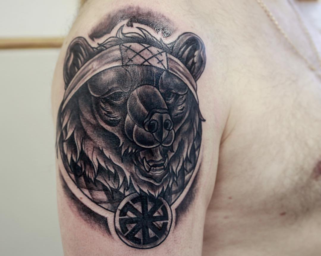 Довольно часто в качестве главного акцента татуировки были животные или птицы. Все они имеют совершенно разные значения, о которых стоит знать до процесса нанесения. К примеру, медведь является хозяином леса и воплощением бога Велеса. Поэтому символ в виде татуировки всегда означает власть, силу, а также здоровье и плодородие.