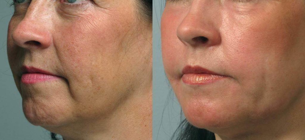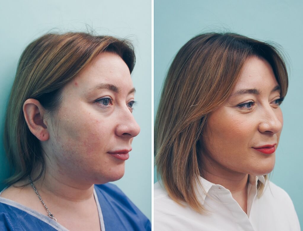 - Подбородок – уменьшается объем жировых отложений, подтягивается кожа, исчезают «брыли»;