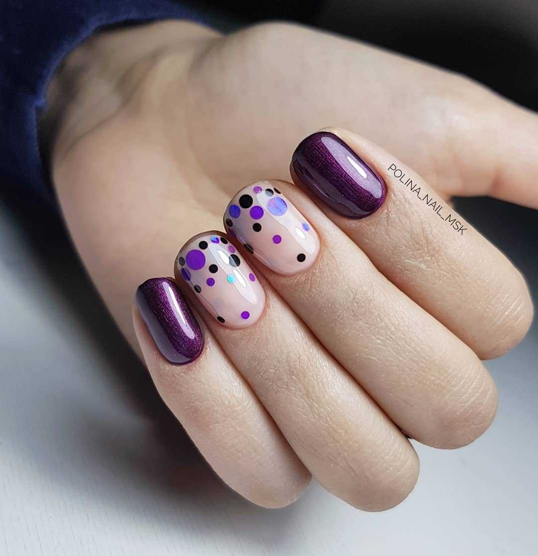 Осенний маникюр 2020 года можно дополнить пенным дизайном ногтей в топовых цветах сезона: бордовый, синий, черный, фиолетовый.