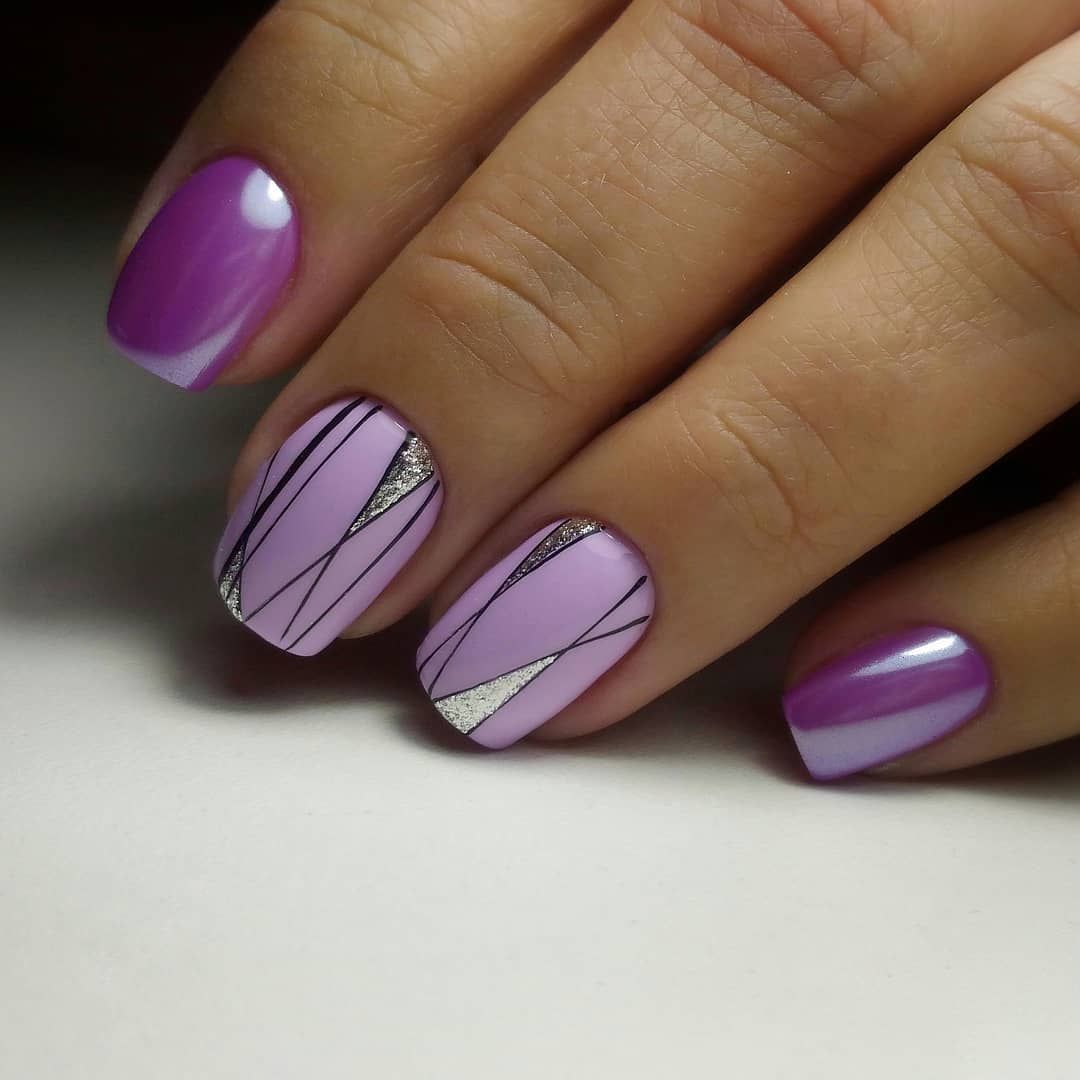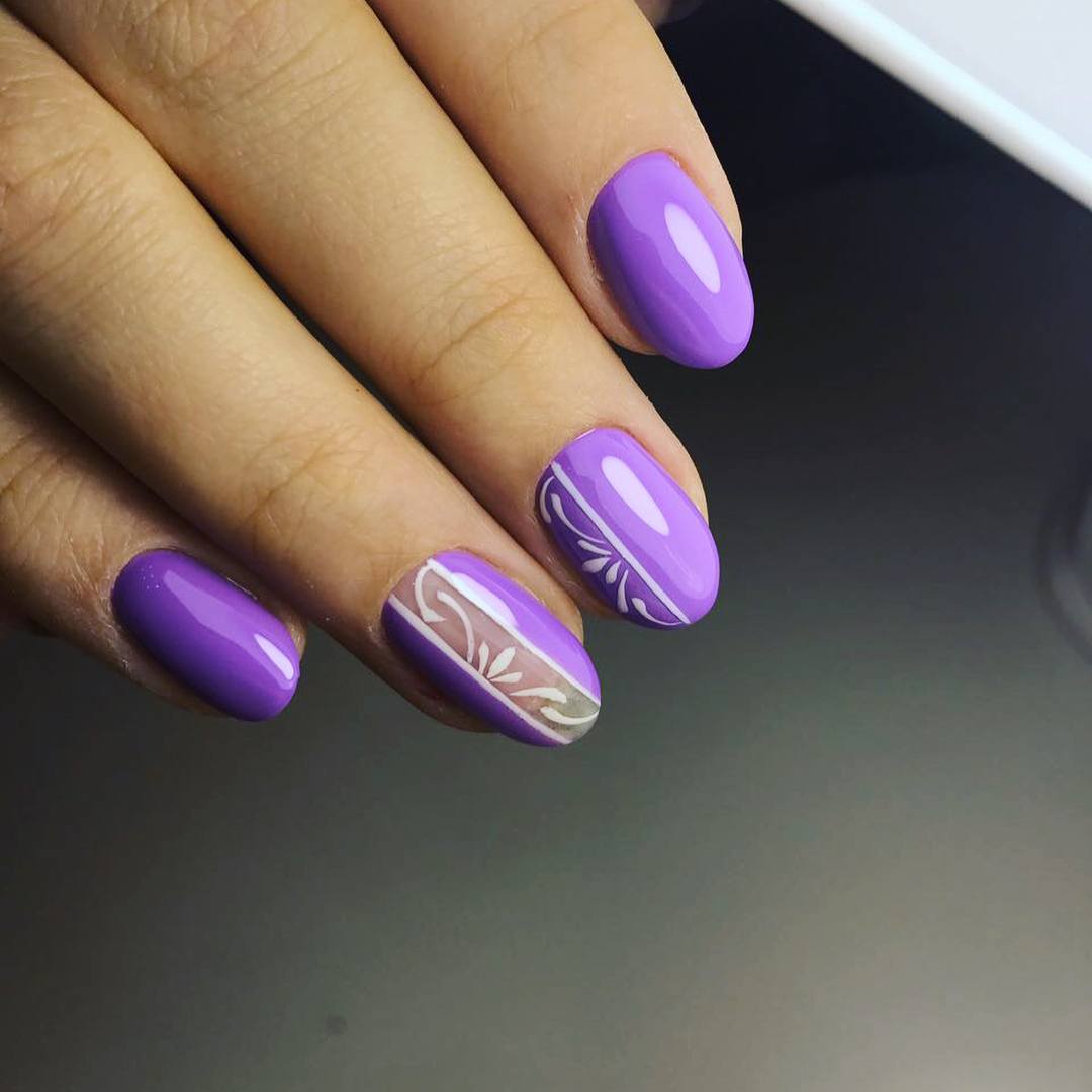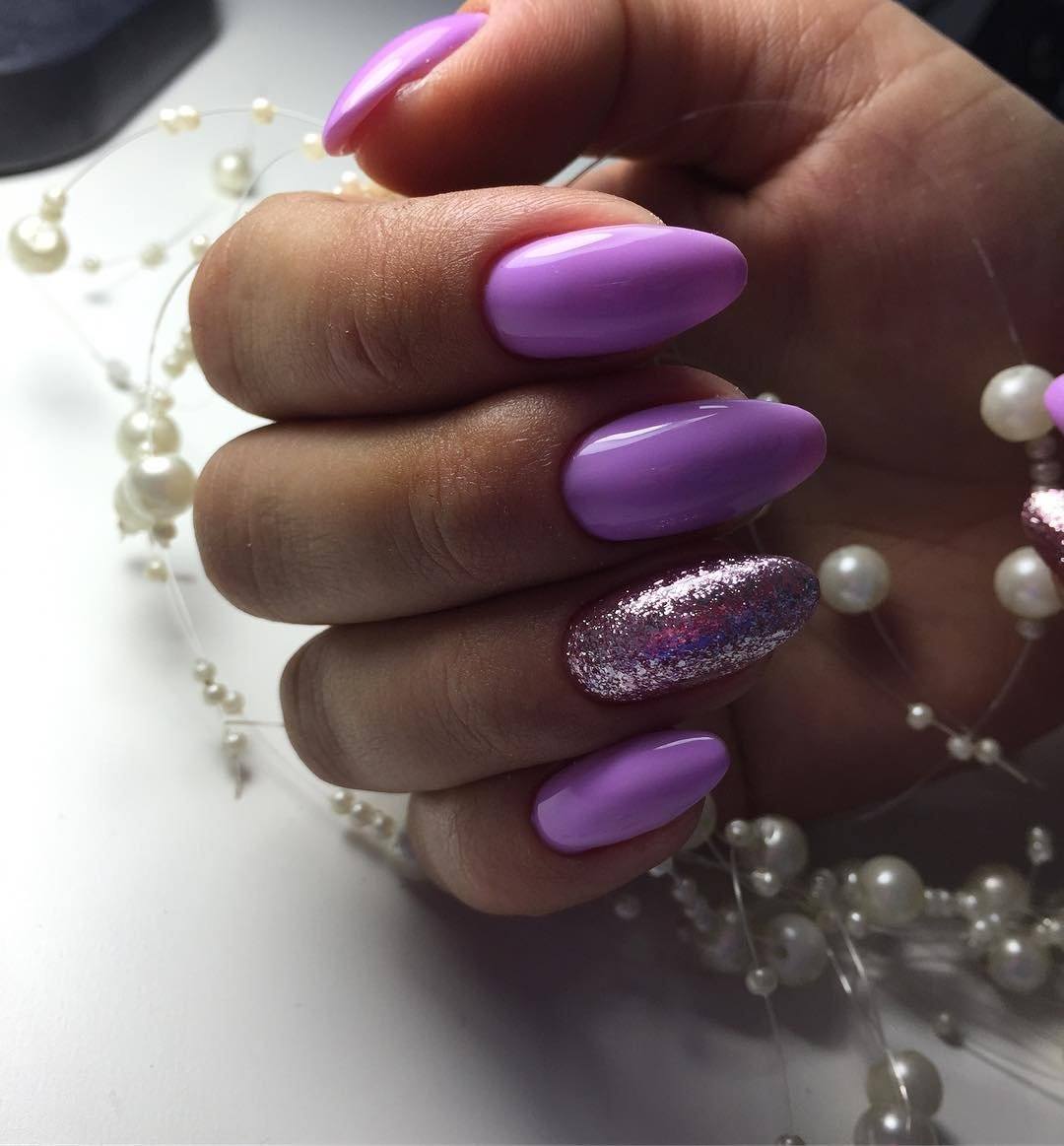 Однотонный нейл, маникюр с украшениями, маникюр с перламутровой втиркой, блестящими фрагментами, аккуратными рисунками и несложными геометрическими композициями – лишь часть всевозможный дизайнерских идей, которые прекрасно дополнят нежные сиреневые оттенки.