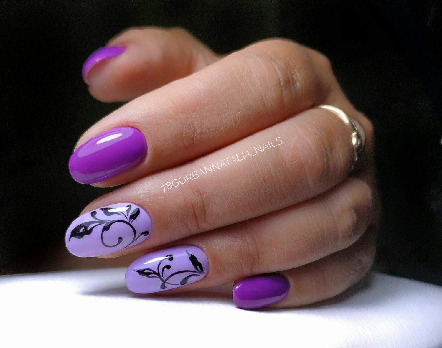 Существуют сочетания оттенков, которые просто созданы друг для друга. В качестве примера можно привести тандем черного и белого, красного и белого и другие. Сочетание фиолетового и желтого также смотрится невероятно красиво и нежно. Эти два кардинально разных цвета могут служить основой для создания десятков весенних и летних нейл-артов.