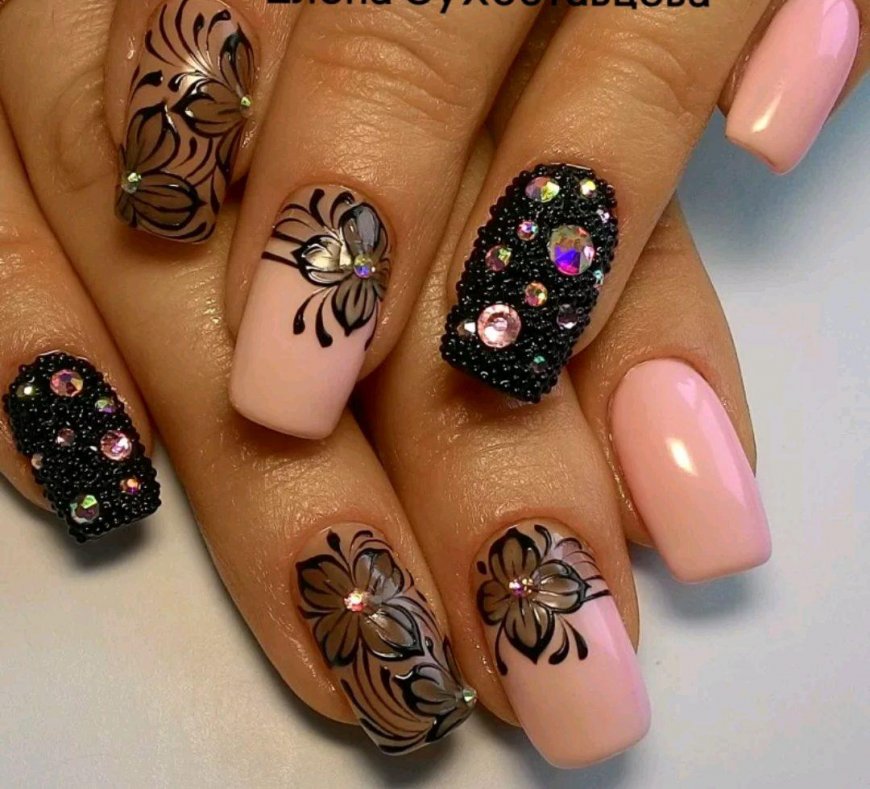 В таком нейл дизайне советуем использовать декор, стразы, блестки.